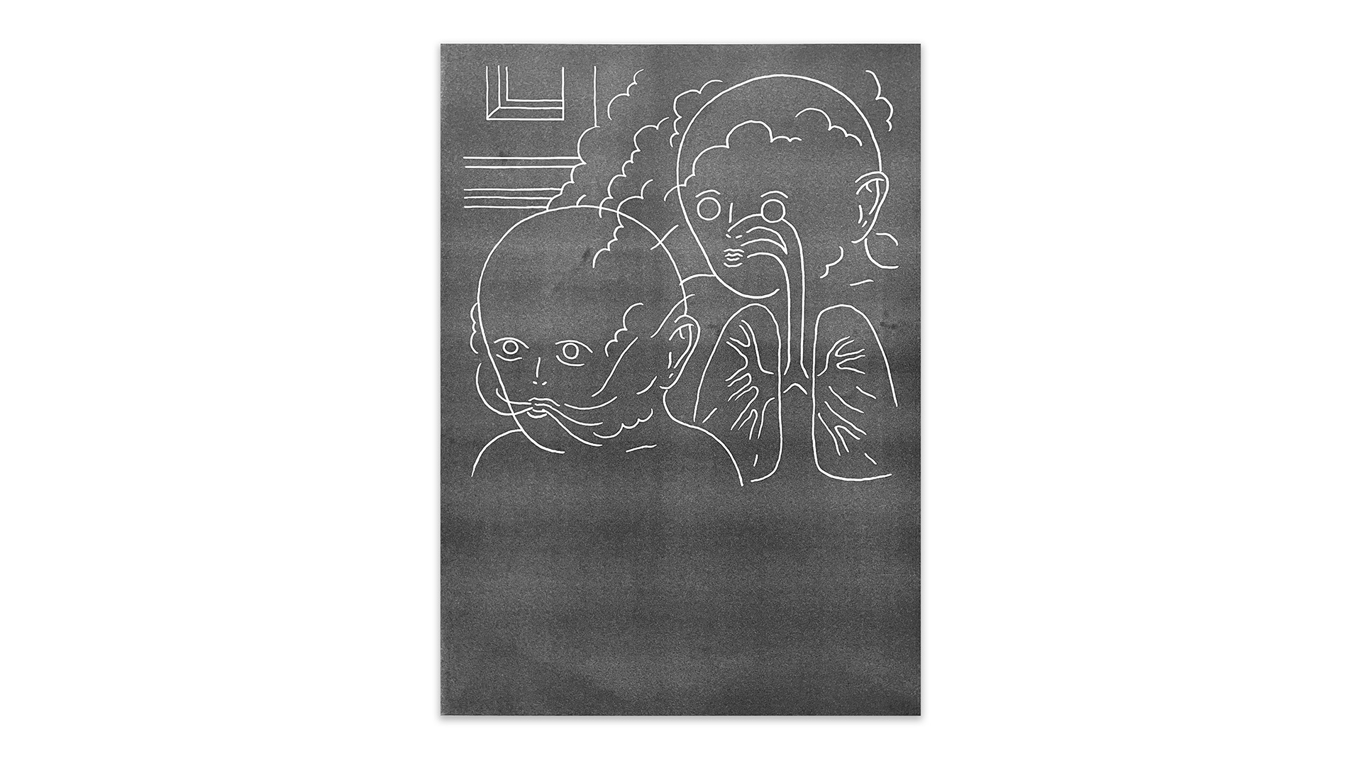 Stampa Risograph, nero al 85 percento, formato A2, 2025.