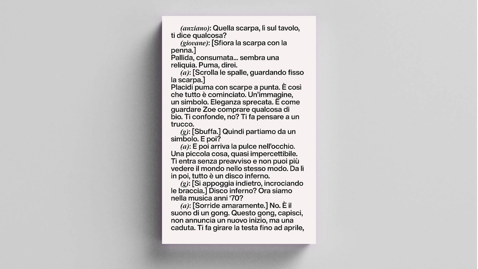 I Fogliacci sono edizioni realizzate in collaborazione con Libri Tasso, una per ogni mostra di GSG. Questo è il primo in assoluto, stampato in occasione dell'opera-regalo di Roberto Fassone che consiste nel dare il nome allo spazio.