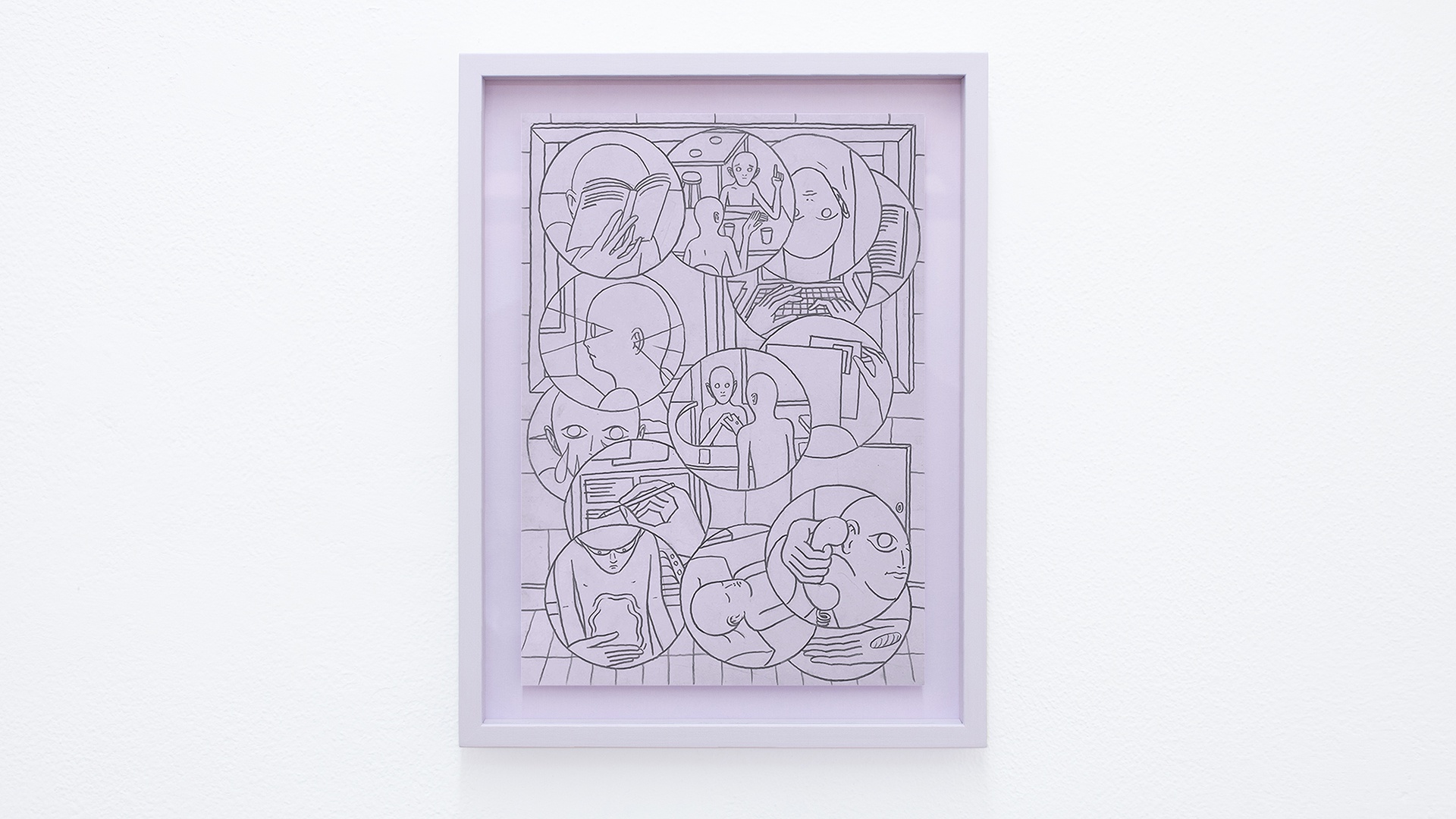 grafite su carta lilla 21x29,7, cornice 27,5x36x2cm (cornice a cassetta con sospensione, vetro anti riflesso)