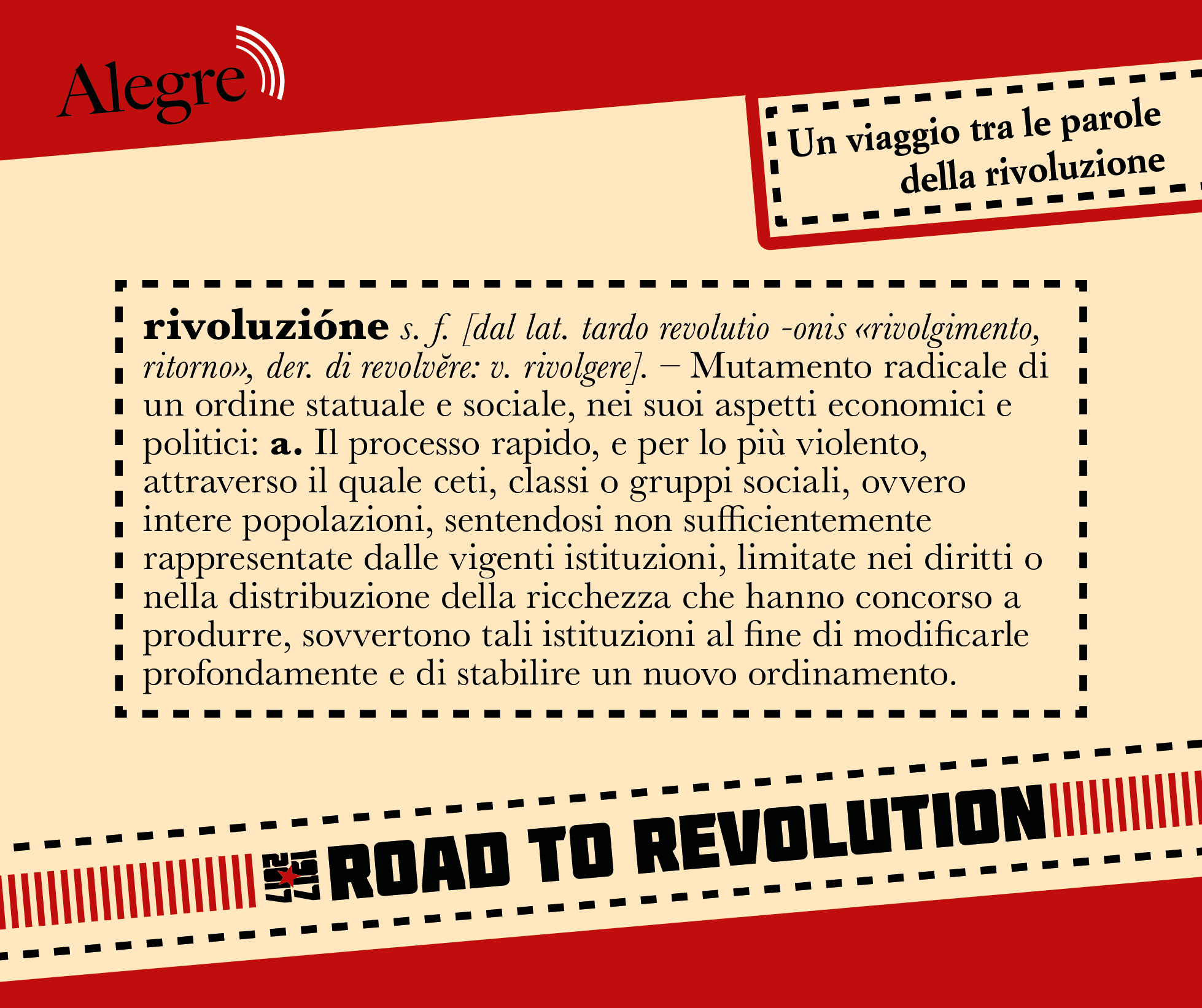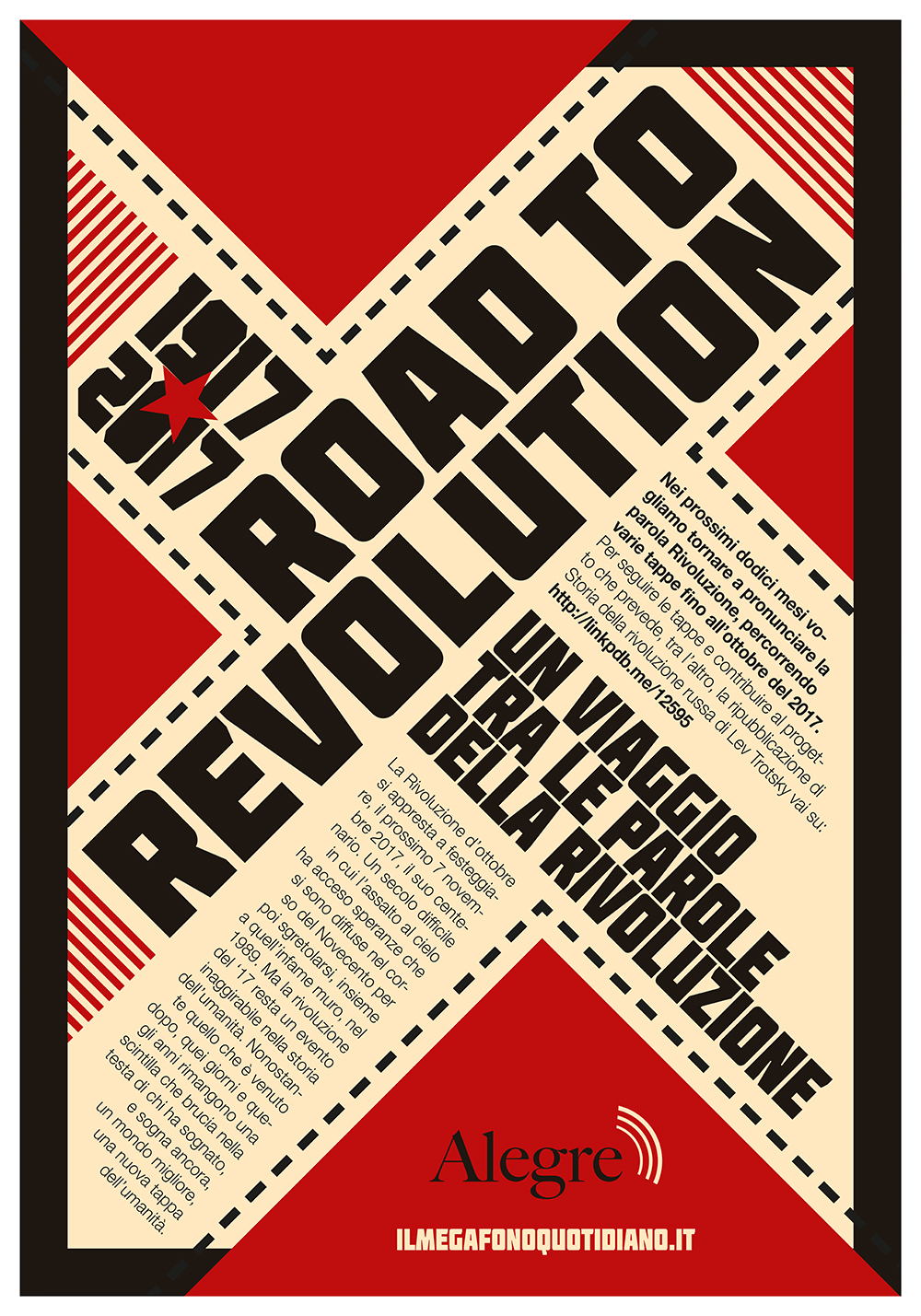 Nei prossimi dodici mesi vogliamo tornare a pronunciare la parola Rivoluzione, percorrendo varie tappe fino all'ottobre del 2017: indagheremo con una nuova pubblicazione uno degli aspetti più originali del movimento del '77; ripubblicheremo il libro Il Che Inedito, a 50 anni dalla morte di Guevara nel ‘67; ci impegneremo per una Road to revolution con iniziative aventi al centro, tra le altre cose, il sostegno e il dialogo con esperienze attuali (a partire da quella del Rojava) e con pratiche originali di Mutuo soccorso a sfruttamento zero. E la Road to revolution attraverserà anche molte delle nostre iniziative e dei festival letterari del prossimo anno.