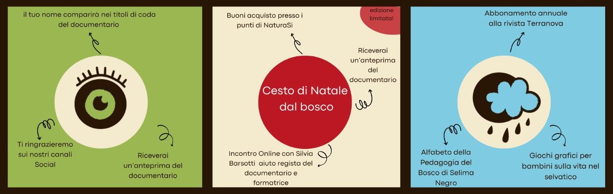 Questi sono i doni che abbiamo pensato per te! Ce ne sono per tutti i gusti: per accompagnatori del bosco, per genitori che si vogliono avvicinare a questo approccio o che già ne fanno parte, per i curiosi e per chi vuole sostenerci!