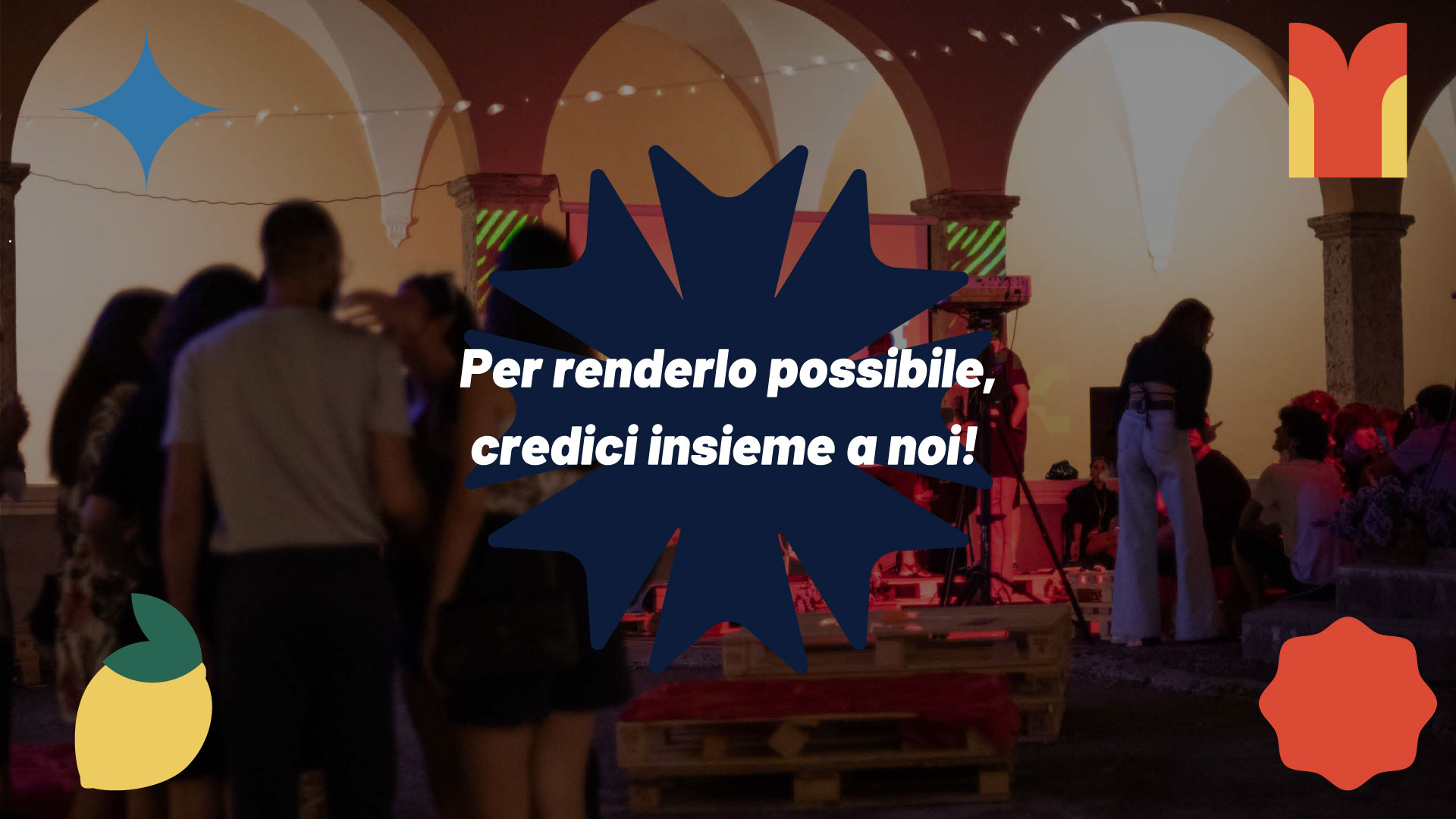 Ogni anno ci impegniamo a realizzare progetti e iniziative culturali volti a creare connessioni e a confrontare realtà tutte in forma gratuita e inclusiva in particolare abbiamo creato e organizziamo il Festival della Musica, dell’Arte e della Cultura a Cava de’ Tirreni, che riunisce le esperienze virtuose, i fermenti artistici e imprenditoriali, offrendo loro uno spazio per presentarsi, raccontarsi e confrontarsi.