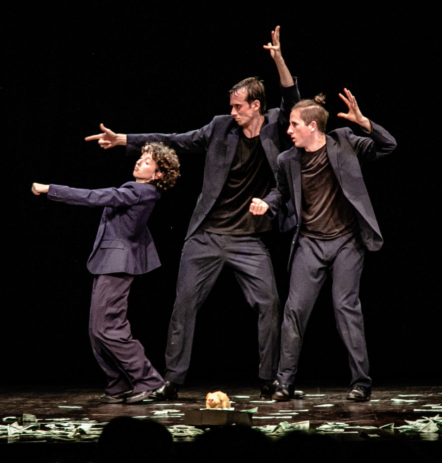 Lo spettacolo Armi & Guadagni è la narrazione tragicomica del fiume di denaro che dalle banche arriva alle guerre di tutto il mondo. Un racconto farsesco che unisce teatro e danza, per parlare della guerra e delle armi, attraverso l’ironia e la potenza del movimento.
