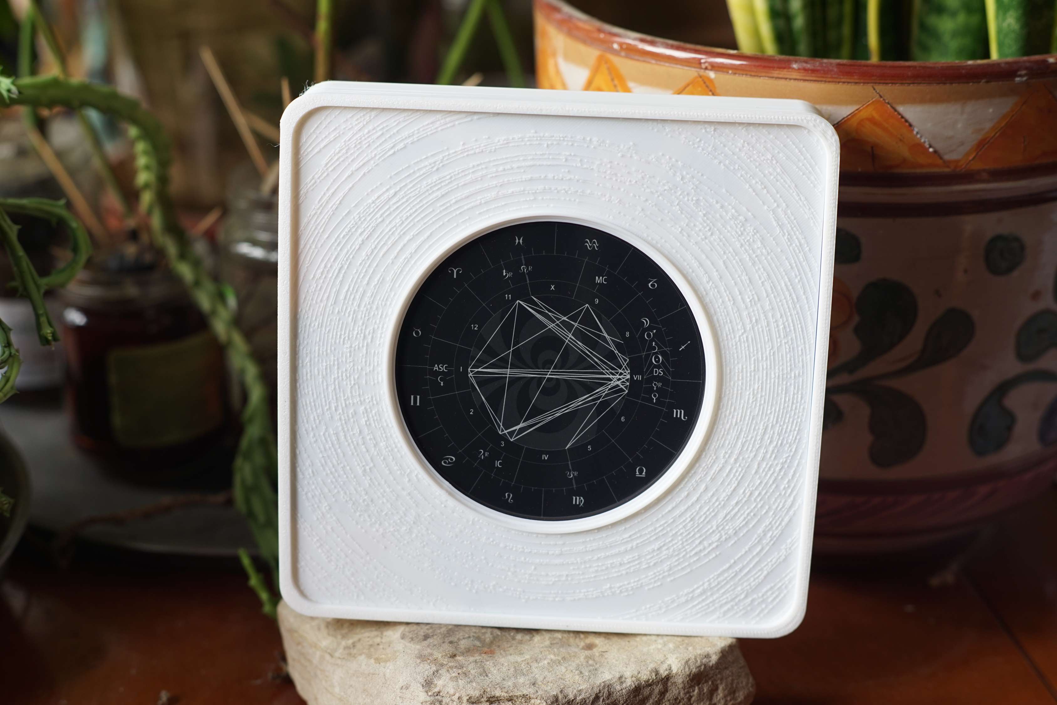 Un astro-orologio che porta il cielo dentro casa, armonizzando lo spazio e ricordandoti — come un piccolo altare vivente — che fai parte di un cosmo vivo, intelligente e interconnesso.