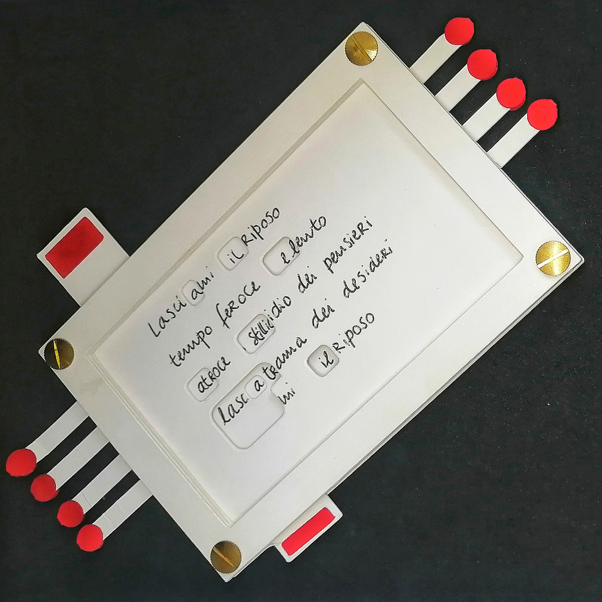 Change is one of the stages of a long process of development and realization of a text that originally was written in autograph form, then shifted to the web, then transposed to a first interactive paper prototype, and then again in digital format to be reproducible through automation. In this last version, the numerical control machine plays a crucial role in materially realizing every characteristic of the interactive and handmade prototype.