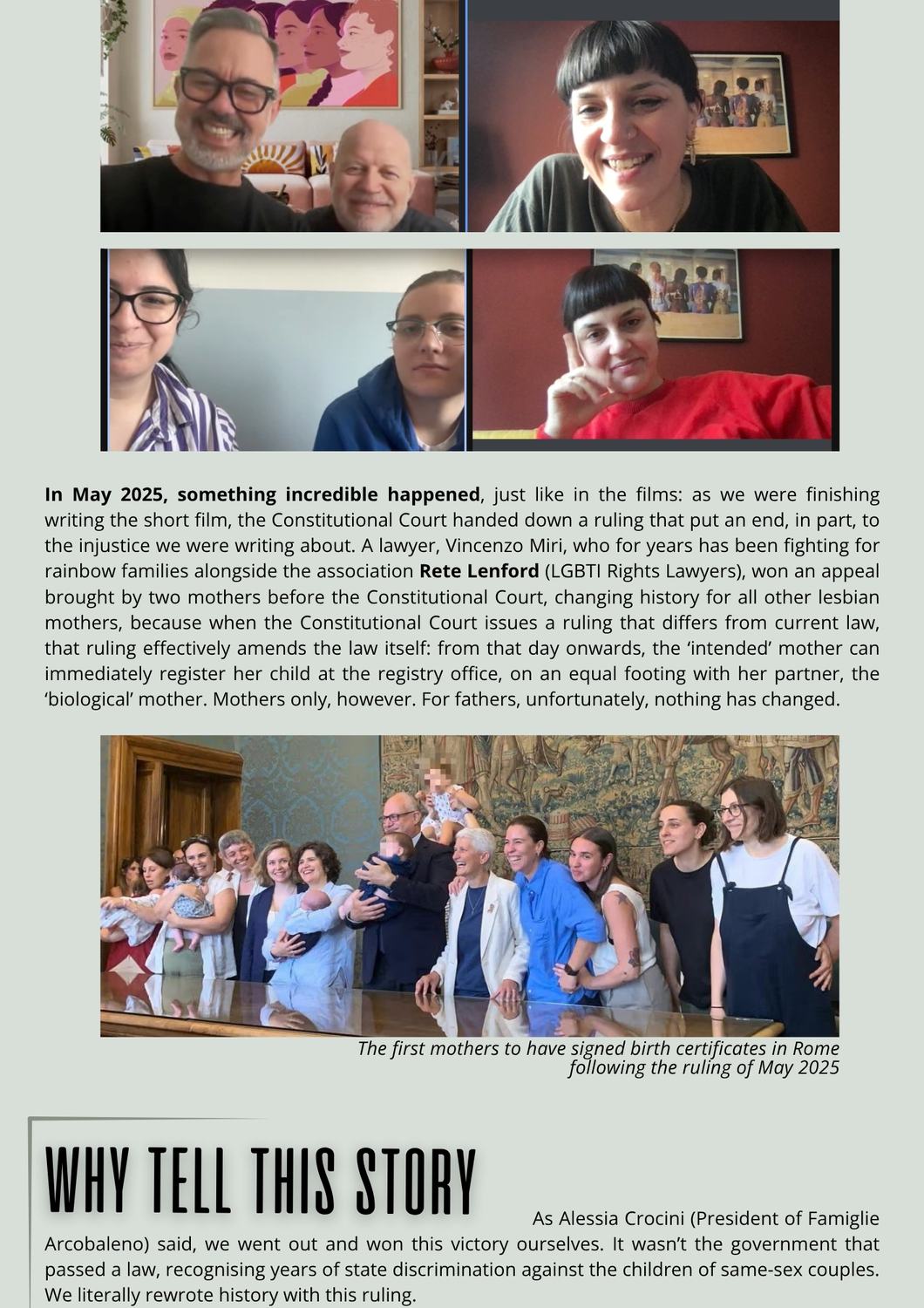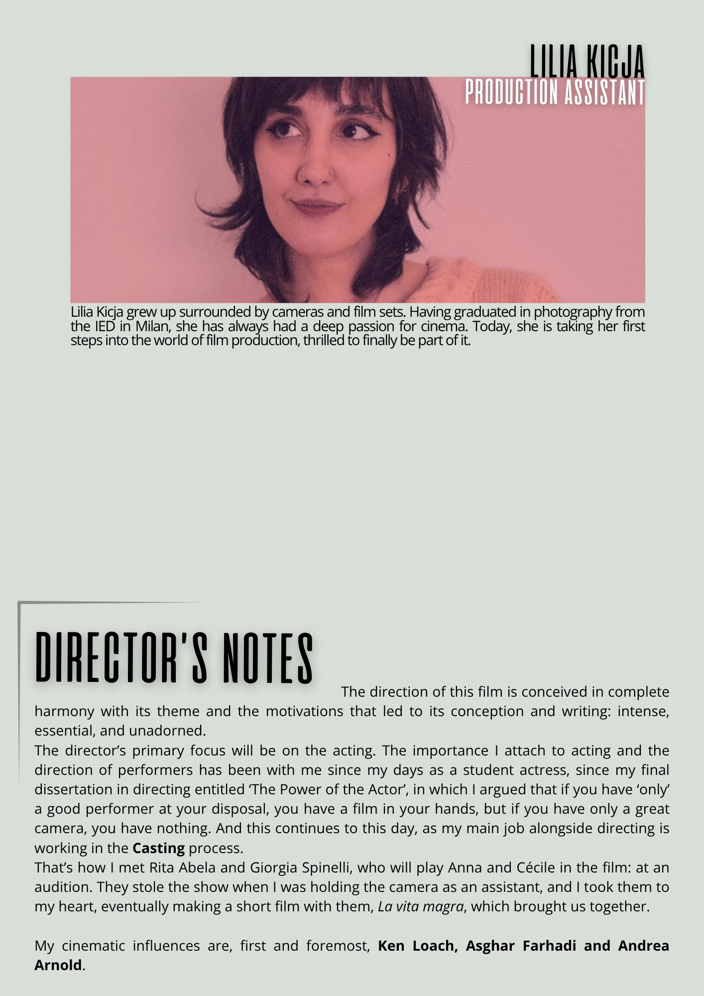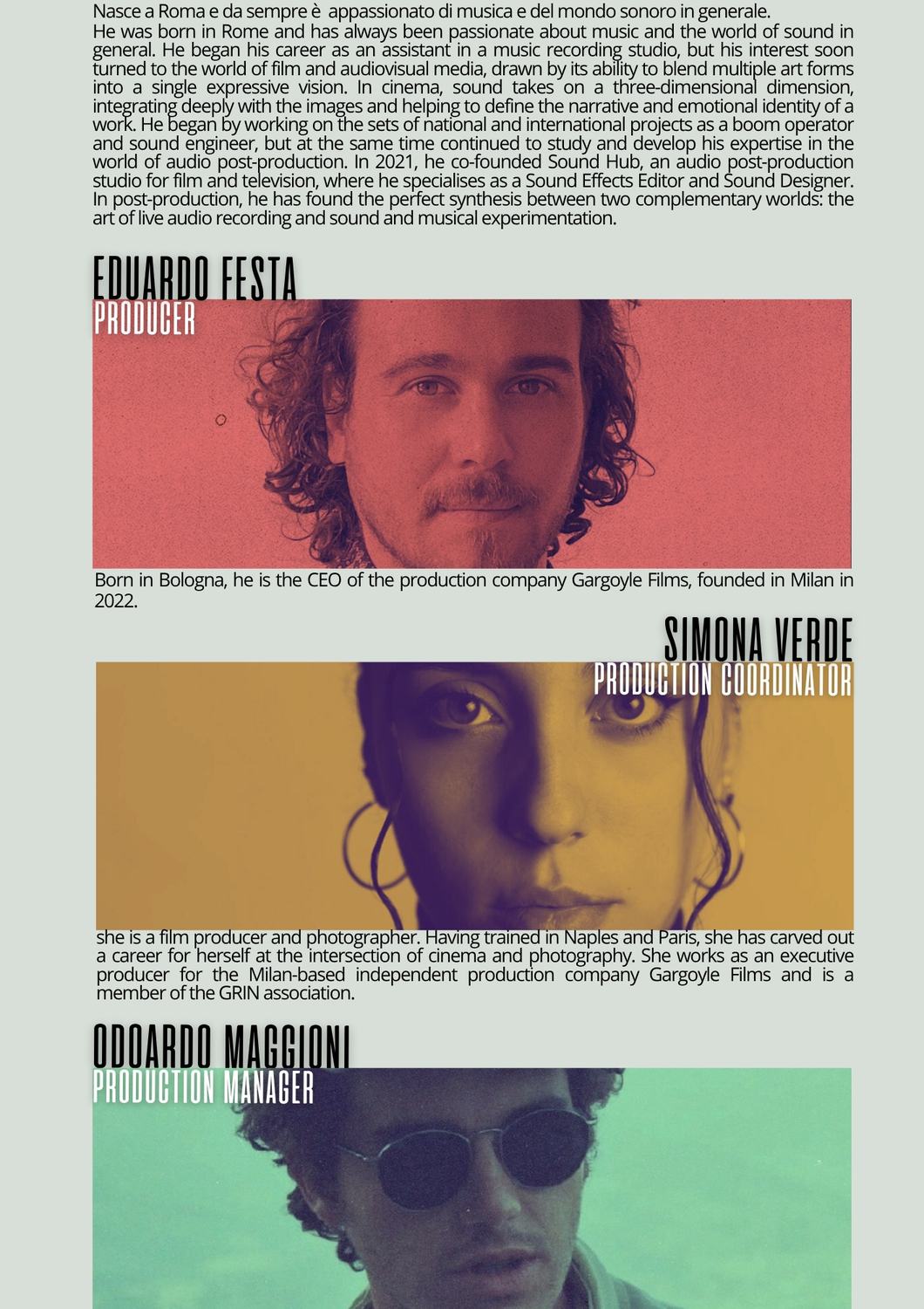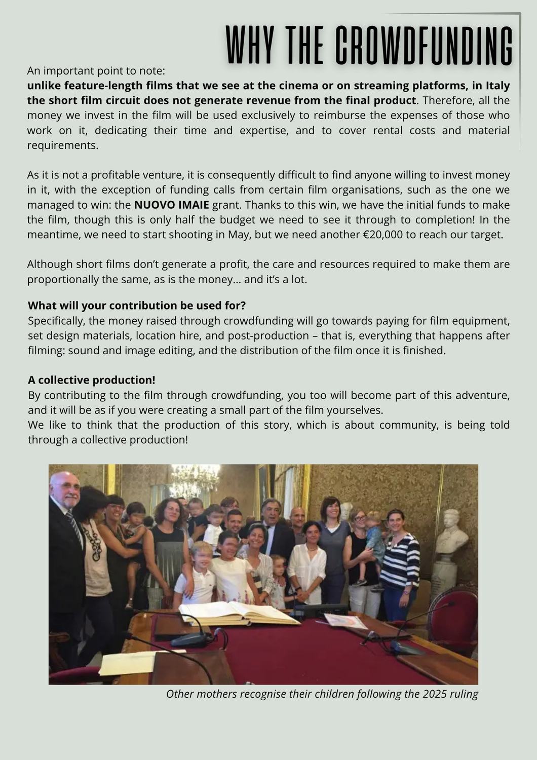 Aggiornamenti via email sull’avanzamento del progetto, menzione pubblica sui canali social del progetto, contenuti esclusivi behind-the-scenes e poster digitale, accesso allo streaming privato del cortometraggio prima della distribuzione pubblica.