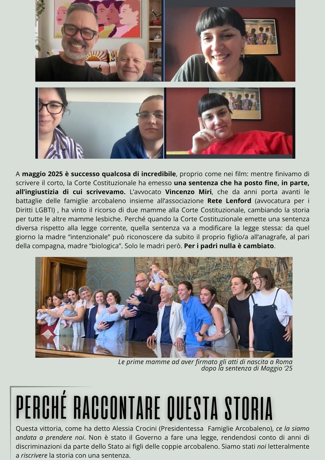 Aggiornamenti via email sull’avanzamento del progetto, menzione pubblica sui canali social del progetto, contenuti esclusivi behind-the-scenes e poster digitale, accesso allo streaming privato del cortometraggio prima della distribuzione pubblica, invito a visitare il set durante le riprese a Roma/Ostia