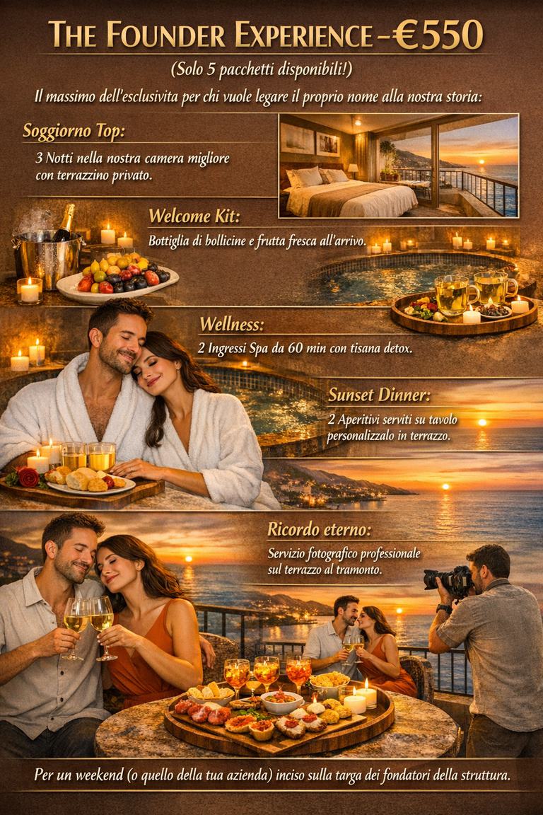 Sostienici oggi, goditi il lusso domani. Voucher validi 12 mesi dall'apertura prevista per fine Maggio 2026.