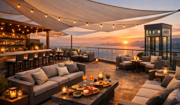 L'immagine è un rendering 3d realistico di come verrà la terrazza e per dare l'immagine dell'atmosfera che si respirerà al Demetra Luxury&Spa.