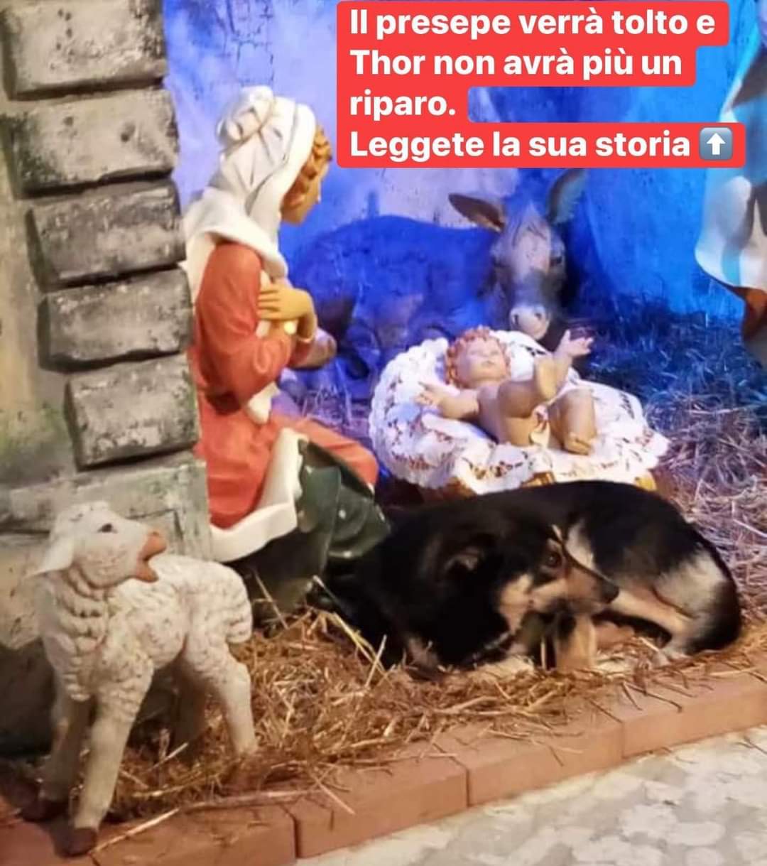 Thor è una cagnolone randagio, rifiutato e scacciato, che ultimamente si è riparato nel presepe di un paesino irpino, nel luogo dove, secondo la tradizione, trovano un porto sicuro tutte le anime, anche quelle più disperate, più umili, più sofferenti. Natale ormai è passato e Thor non ha più questo posto (fisico e metaforico) dove rifugiarsi e cerca una casa! Buono e giocherellone, è una taglia medio-grande, è giovane, ha circa due anni ed è stato abbandonato da oltre un anno. Compatibile con le femmine, con i maschi dipende. Verrà affidato vaccinato e microchippato con iter preaffido e staffetta autorizzata ovunque ci sia una buona adozione per lui. Qualora foste interessati ad adottare Thor, mandate un messaggio al numero 3493655628. (ANGELA)