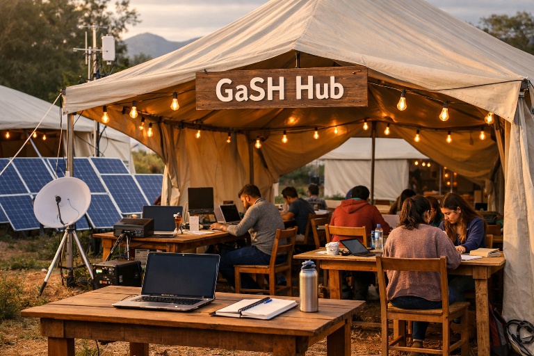 Following the October 2025 truce, Gazaweb is working toward a more ambitious goal: ensuring stable access to communication, education, and connectivity by developing permanent centers, two Gazaweb Social Hubs (GASH). One GASH is under construction in Gaza City; the other will be located within Khan Younis University.