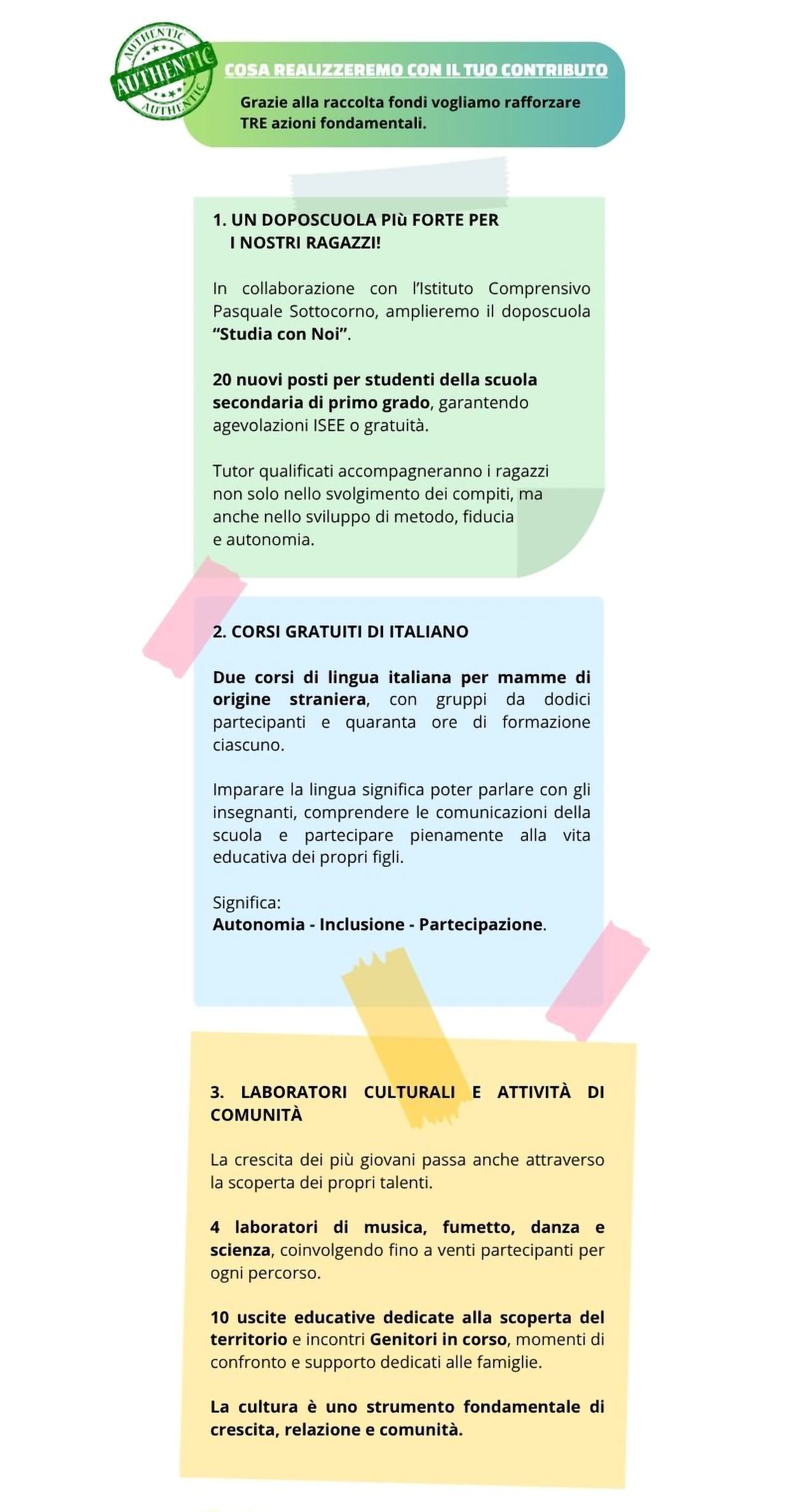 Un primo gesto per sostenere il progetto.