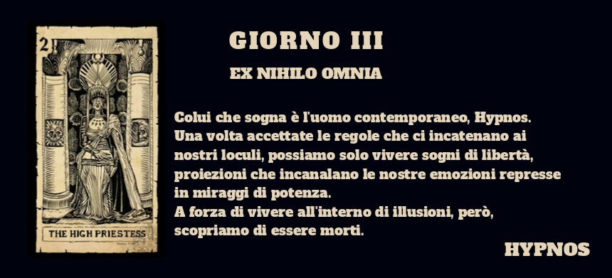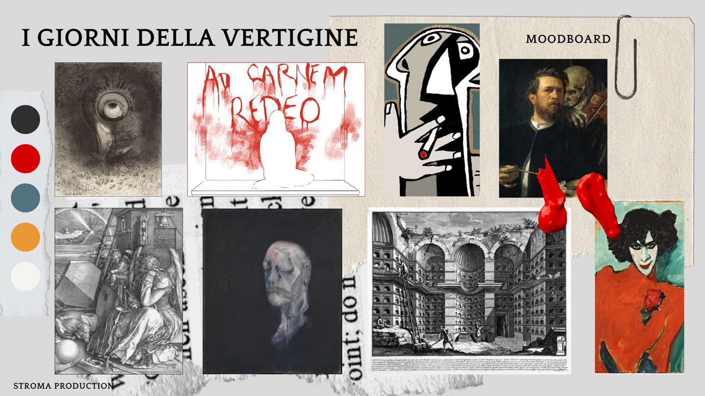 "I giorni della Vertigine" vuole svelare il volto nascosto della quotidianità, affrontando le diverse forme che la vertigine sa assumere. La prigionia ci pervade sin nel profondo, ci stringe all'interno di quattro piccole mura e, fuori, in mura infinitamente più grandi, quelle di un sistema alienante che racchiude tutti noi all'interno di loculi.
