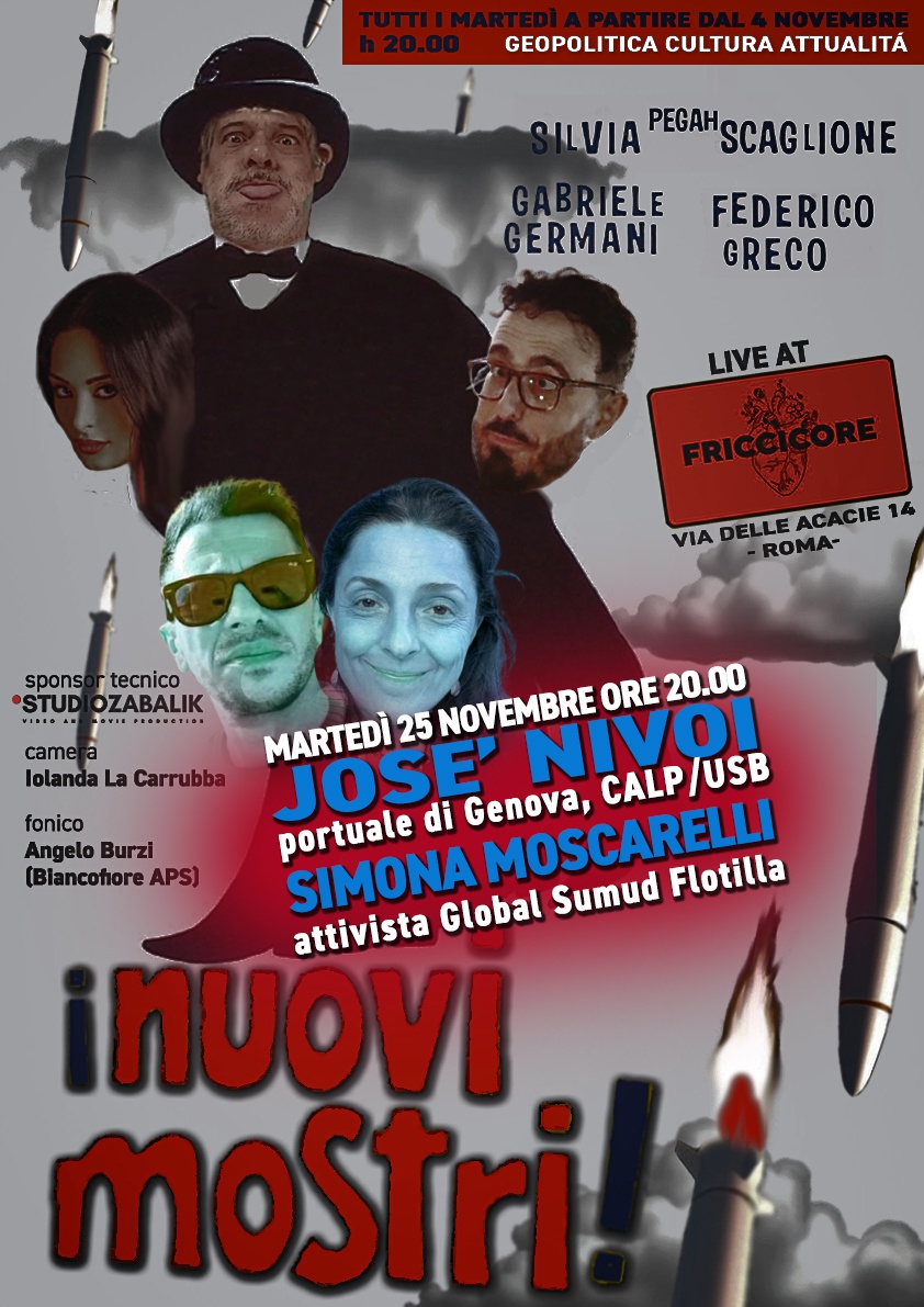 "I nuovi mostri" è un format di interviste live che si svolge tutti i martedì alle 20.00, a partire dal 4 novembre, in Via delle Acacie 14 (Roma), presso Friccicore, condotto da Federico Greco, Gabriele Germani e Silvia Pegah Scaglione.