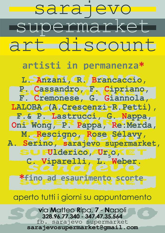 sarajevo supermarket è nato nel 1995 come logo con il quale promuovere produzioni creative marginali e artisti indipendenti, emergenti e irregolari. Le drammatiche immagini del conflitto in atto nell’ex Jugoslavia in quegli anni indussero a optare per un nome che accentuasse il contrasto tra la città di Sarajevo, teatro di guerra e di disagio, e il supermaket in quanto luogo per eccellenza della società delle merci e dei consumi. Con la scelta di tale denominazione si volle rendere chiara sin dalle premesse l’intenzione di declinare l’intervento artistico in direzione di un impegno sociale attivo. Nel corso degli anni sarajevo supermarket ha organizzato numerosi eventi finalizzati alla valorizzazione e allo sviluppo di tutte le arti, ha praticato le artiterapie con sofferenti psichici, ha educato alla creatività bambini e giovani drop-out.