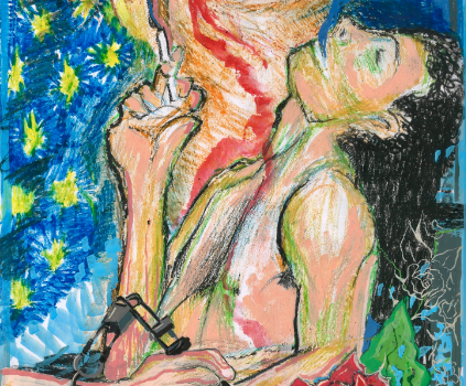 Ha problemi di udito all’orecchio causati dalla continua esposizione a rumori molto forti fin da quando era molto piccolo. Dopo il divorzio dei genitori passa tutta l’infanzia nella roulotte del padre che vive spostandosi da un rave ad un altro. Quando la madre riesce a ritrovarlo lo porta via. Vive per anni infelice in un ambiente in cui non è amato. A sedici anni scappa di casa alla ricerca del padre che non ritroverà mai più. Lui che adorava suo padre diventa come lui: un nomade. Il padre viveva tatuando in giro e così lui fa lo stesso. A venticinque anni conosce Indiana, la chiama così data la sua grande passione per Indiana Jones e il carattere avventuriero di lei. Si innamorano e non si separano più. È convinto di amare il modo in cui vive, la sua natura, ma in realtà si sente sporco: sa di essere un tossico, un senzatetto. Odia il fatto che Indiana faccia la sua stessa vita per colpa sua. Sogna di redimersi, sogna una rivalsa sociale. Gli è però impossibile cambiare. Finge di odiare il benestante ma è ciò che vorrebbe essere. Indiana lo fa sentire meno vuoto, ma questo sentimento lo tormenta, l’amore non basta per stare bene, vuole molto di più dalla vita.