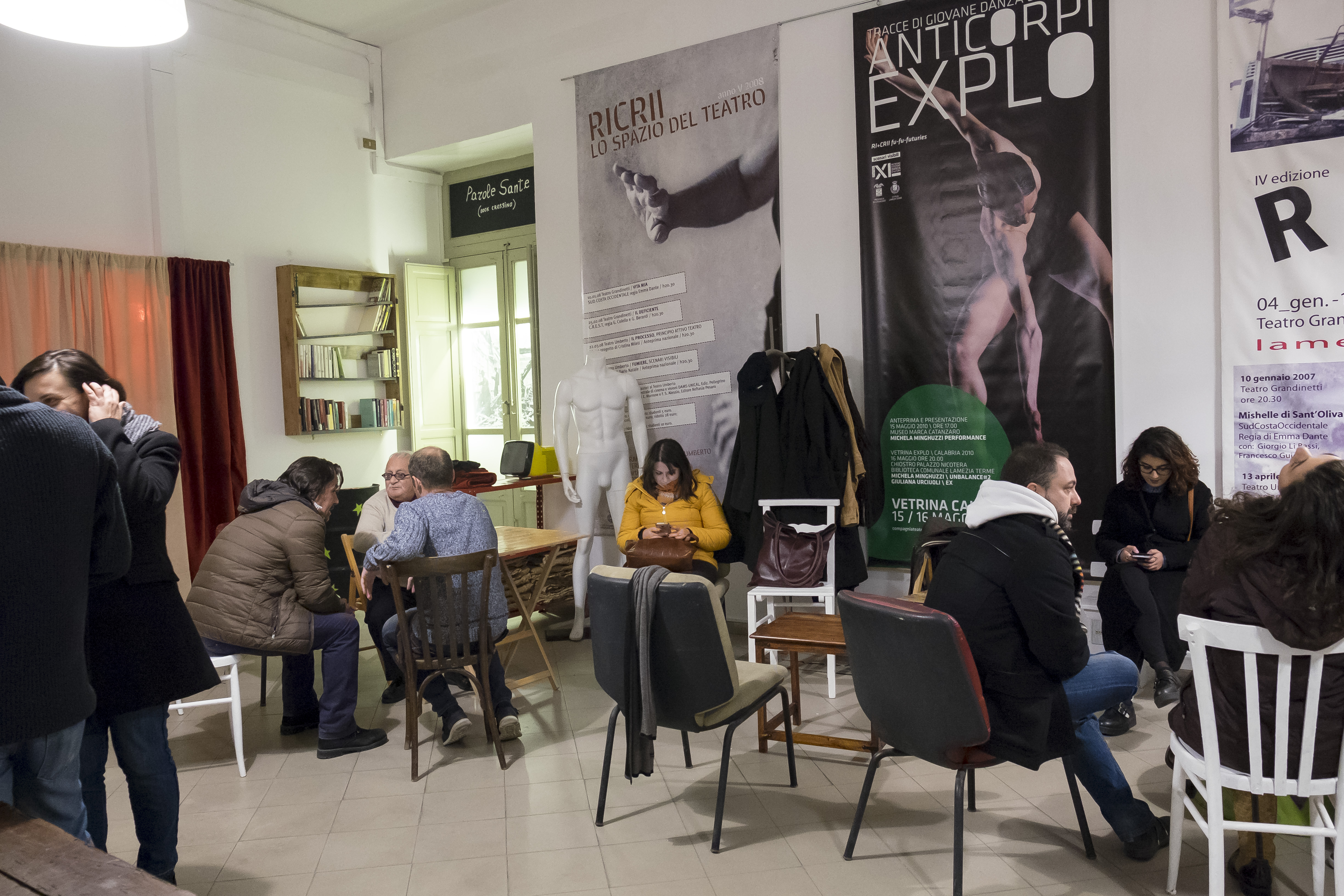 Dalle vicissitudini storiche emerge una Calabria da sempre indecisa, da uomini e natura costretta ad eterne transumanze che ne hanno ibridato cultura, tradizioni ed identità e che sospesa tra mari e monti, continua a perpetuare i suoi masochisti oltraggi con l’avallo di una sottospecie di classe politica dagli orizzonti limitati agli interessi delle caste di appartenenza. Serve andare lontano, appunto altrove, affrontare discorsi utopici, camminare verso nuovi orizzonti, ma questa volta più vicini. In fondo, è l’utopia che ci insegna a guardare oltre ogni cosa, catapulta la mente, la coscienza, al futuro. Vi è poi la terza città della Calabria, che prende il nome Lamezia Terme, metafora perfetta delle contraddizioni dell’intera regione, che da sempre non è un paese per giovani, dove nella piazza del vecchio mercato, un tempo fiorente di terraglie e frutti della terra, con pochi euro, già a dodici anni, puoi scoprire l’ebbrezza della felicità sintetica e delle sue derive… in fin dei conti vi è una stellina su quelle pillole, un inno al sogno e come mai in questo caso, alla resa; da questo scenario prende le mosse una esperienza artistica e inevitabilmente politica, risultato di una pratica più testarda che storicizzata, consolidata sul campo da un paio di decenni ormai, che vuole essere motivo di coinvolgimento rinnovato di giovani e meno giovani, intorno ad un’etica teatrale del fare e del vedere, ma non solo . È il TIP Teatro, nuova sede operativa di Scenari Visibili, compagnia teatrale fondata dall’attore Dario Natale, che da alcuni mesi occupa le sale di un antico palazzo settecentesco, ubicato nel centro storico di Lamezia Terme, spostando nel suo interno, non solo le proprie attività di laboratorio e di programmazione di spettacoli, RiCrii è il nome della rassegna (XIV edizioni), ma rilanciando con un nuovo spazio espositivo (Canyon inverso), una biblioteca galleggiante dello spettacolo (la cui dotazione fatta di prestiti e donazioni cresce di ora in ora), area book crossing (parole sante), ed altro ancora in elaborazione. Se Ricrii vuol dire nel gergo dialettale oltre a ‘divertirsi’ anche ‘ricreare’, Tip Teatro significa anche sfida ed incoscienza, spazio culturale indipendente che fa capo alle proprie forze, dunque autogestito: attività laboratoriali per fasce d’età, spazio scenico attrezzato e dedicato al lavoro e quindi a Julian Beck (spazio Beck to Beck), capienza massima 100 posti con spazio scenico rialzato e quadratura; tra i nomi che hanno calcato le scene del Tip nel 2017 ci sono Valerio Malorni e Simone Amendola con il loro L’uomo nel diluvio (premio In box 2014), Tino Caspanello, Mana Chuma Teatro oltre a collaborazioni con il Festival Primavera dei Teatri e con il blog il Pickwick e la sua scuderia di critici teatrali. Ma cosa è diventato, nel tempo, nell’immaginario collettivo e specie in quello giovanile, il teatro? A questa domanda ha risposto il 28 e 29 aprile Fare Pubblico, altra iniziativa realizzata al Tip che ha coinvolto anche le scuole intorno a tavoli di lavoro con Alessandro Toppi e Settimio Pisani, critico ed organizzatore teatrali navigati, ma forse la vera scommessa è verso una pratica quotidiana, di scambio e condivisione anche soltanto di dialogo intorno ad un libro o ad un’idea. Il Tip è questo che vuole essere, un auspicio di bene stare, per imparare a toccare le mani e stringere altre mani. Il territorio ci guarda intanto con sospetto, ma i più temerari iniziano ad avvicinarsi, con un coinvolgimento di pubblico proveniente da più zone della regione.