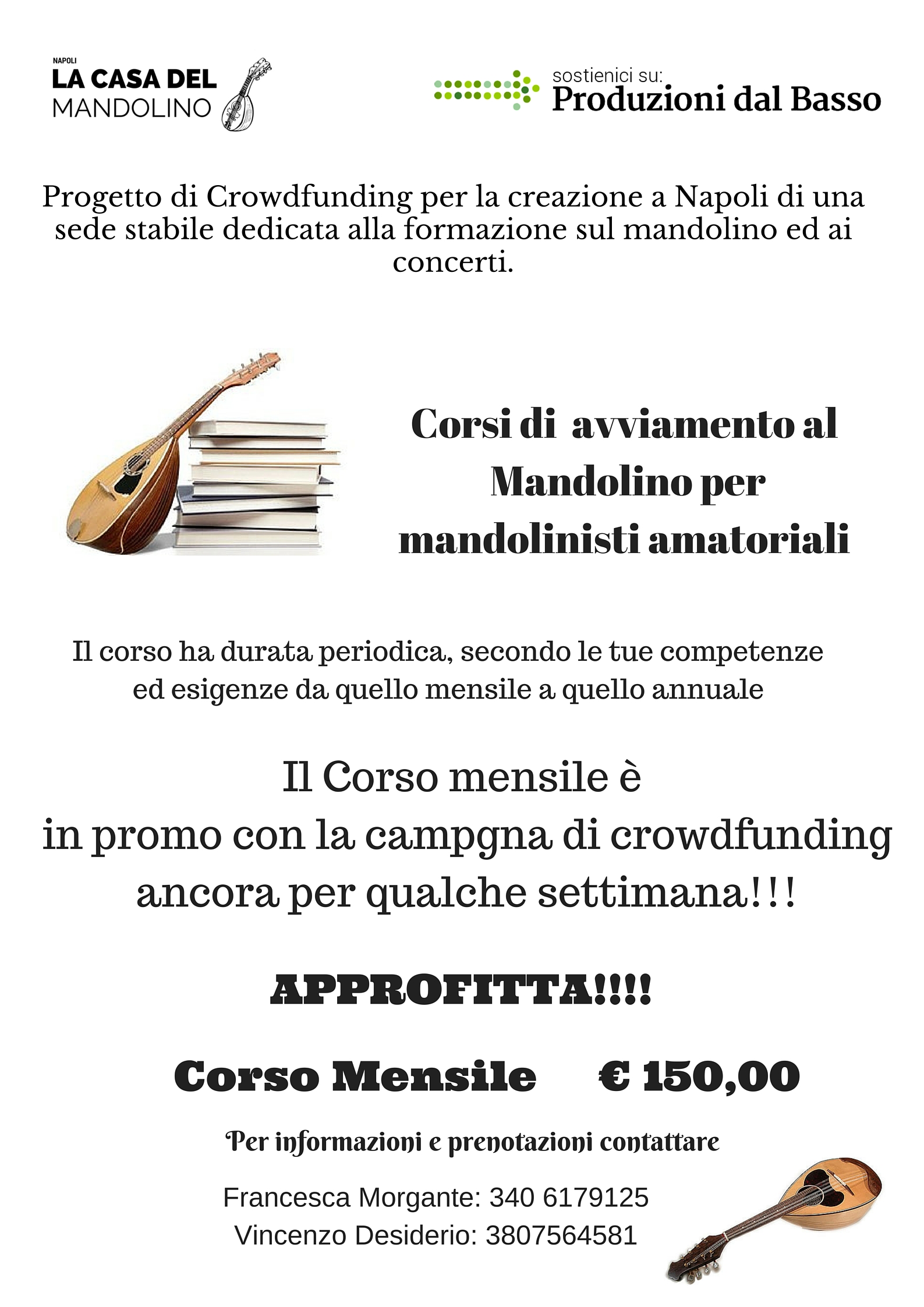 A Napoli, il sogno di creare la “Casa del Mandolino”, un luogo dedicato a concerti, formazione, mostre, teatro, storia, arte, artigianato e di promuovere il lavoro grazie alle arti potrebbe avverarsi col tuo aiuto.