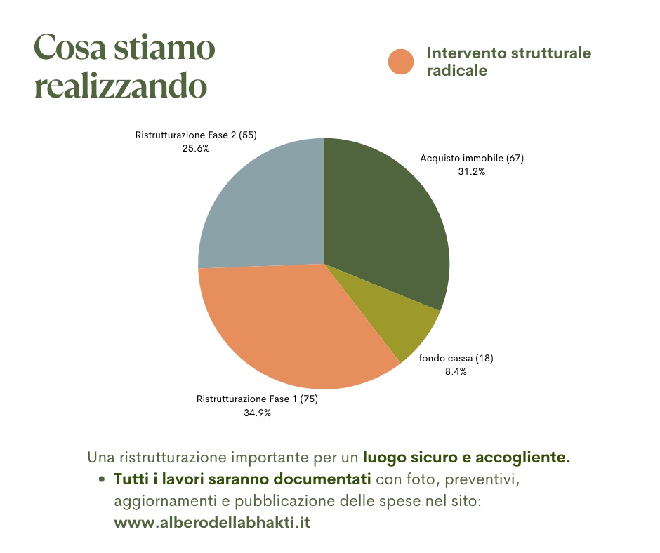 Una volta completati i lavori strutturali, l’immobile diventerà la sede dell’APS “L’Albero della Bhakti”, offrendo:
