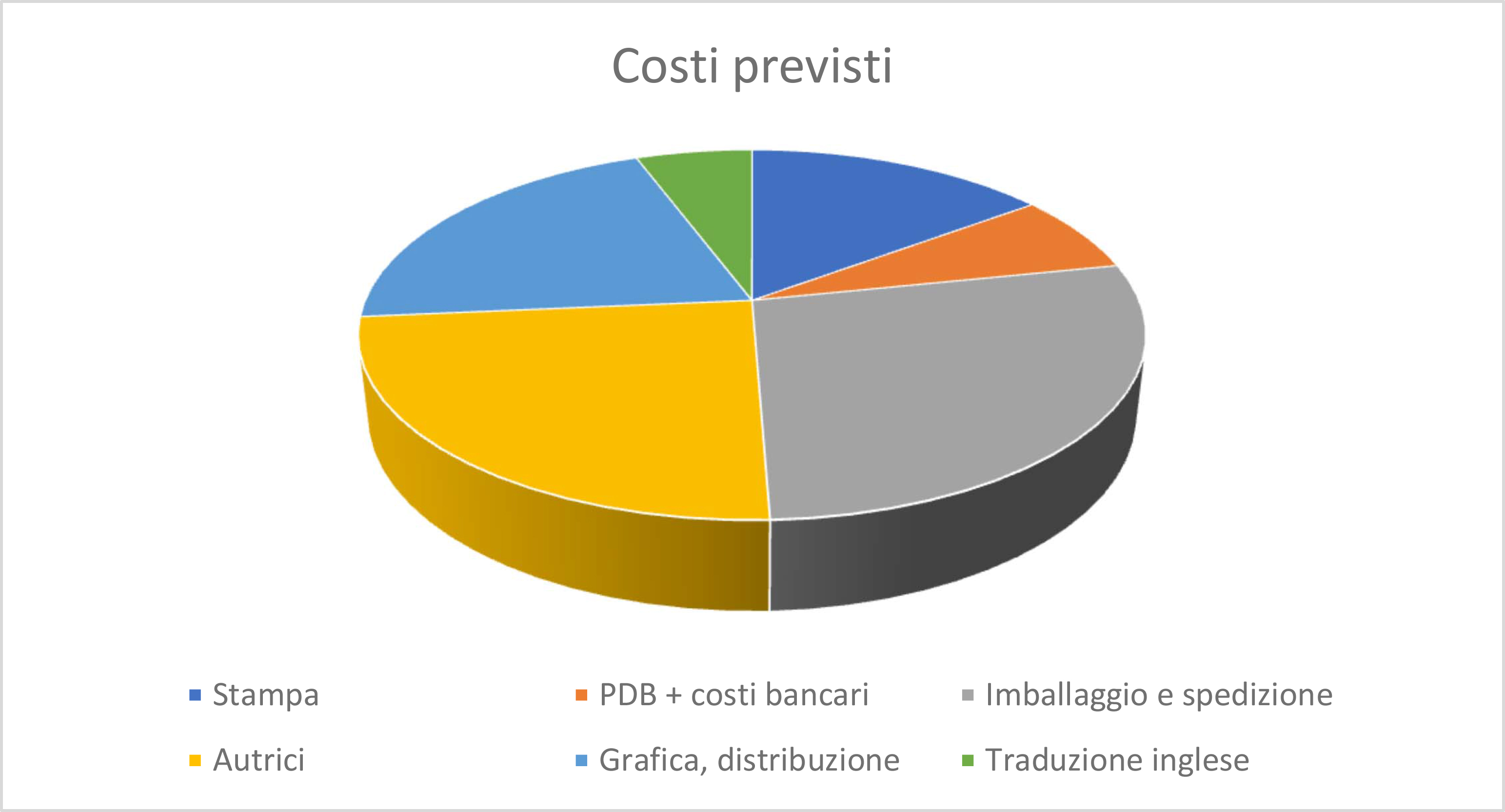 La cifra raccolta verrà impiegata per coprire i costi di realizzazione del progetto come esplicitato nel grafico in basso. Dopo la conclusione della campagna di crowdfunding, prevediamo di poter spedire il materiale entro il 1 settembre 2018.