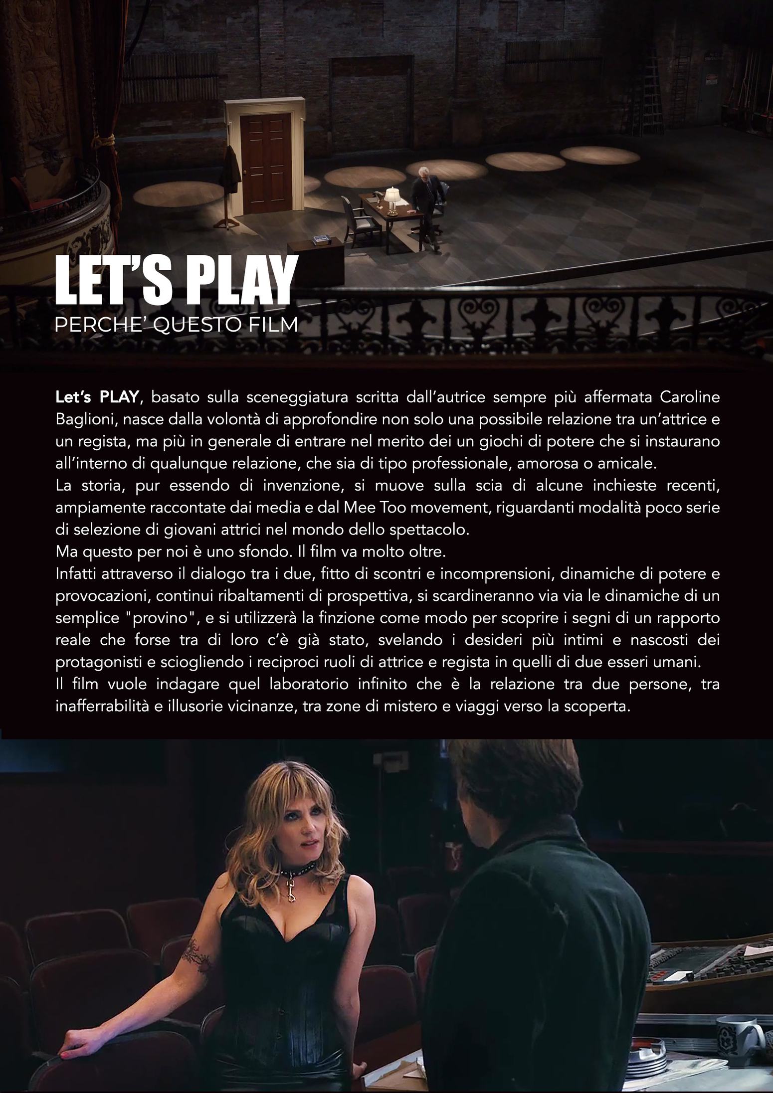 Siamo due registi, Francesco e Sandro, e abbiamo organizzato questa raccolta fondi per completare il budget per la realizzazione del nostro primo film lungometraggio, dal titolo LET'S PLAY.