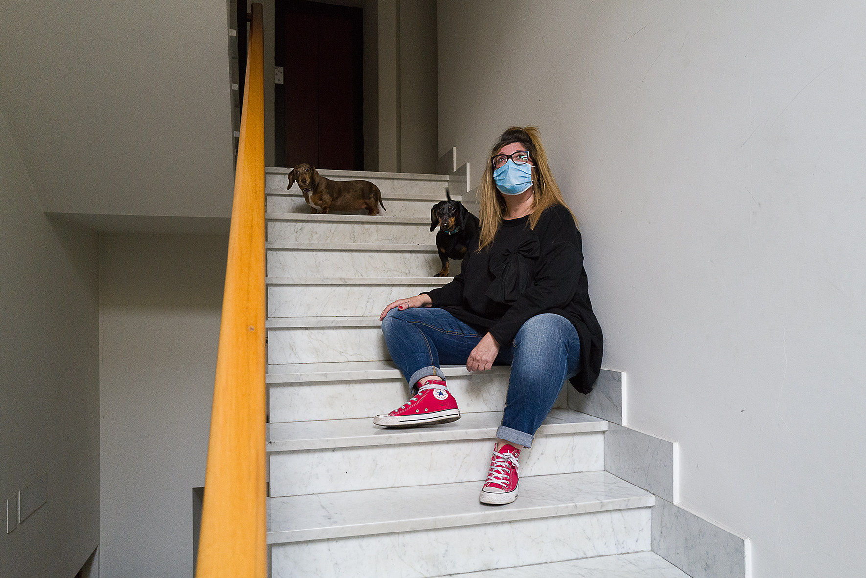 Ricordo con estrema nitidezza il primo giorno di lockdown, quando pensai che da lì in poi sarebbe stato un periodo di grande cambiamento. Dopo tre giorni iniziai ad avere un senso di frustrazione per non poter uscire da casa, non tanto per la mancanza della vita sociale che solitamente la mia è scarsa, ma per la visione che avevo del mio futuro lavorativo. Ho cercato di esprimerla documentando la quotidianità tra le quattro mura domestiche. Ciò che prima era scontato e sembrava non avere nessuna importanza, era diventato essenziale per la sopravvivenza. Il mio sguardo per sette giorni in una casa dove normalmente torno solo per pranzo, cena e notte. Ho sentito però il bisogno e il dovere di documentare anche ciò che stava accadendo in città, quindi procurandomi un incarico lavorativo che mi permetteva di muovermi liberamente, ho fotografato e filmato i silenzi e i vuoti di una città, Teramo, che sembrava ferma, disabitata. Ho voluto poi approfondire nel dettaglio questo periodo storico che stiamo vivendo, pertanto ho pensato di mettermi in contatto con molti dei miei amici e conoscenti proponendo loro di farsi fotografare fuori dalla porta di casa, nell’androne del loro condominio, nel cortile della loro abitazione, nel luogo che è stato il confine tra l’appartamento dove si era costretti a stare e l’esterno dove era vietato recarsi salvo per necessità. Persone fotografate con la mascherina che rendeva tutti uguali nell’angoscia e nella paura del virus. Ho chiesto poi a ciascuno di raccontarmi la propria esperienza nel lockdown a livello lavorativo, emozionale e personale, come se stessero scrivendo pagine del loro diario. Così è nato “Linea di Confine – Covid-19”. Un piccolo progetto per lasciare una traccia indelebile e far sì che il drammatico periodo che ha colpito così come il mondo intero anche la mia città, nella pur drammatica cosa che è stata per la perdita di uomini e donne, non resti semplicemente un lontano ricordo sbiadito dal tempo. Sentivo che bisognava fermare le sensazioni, emozioni, ansie, paure, riflessioni, dolori, preoccupazioni, incertezze, visioni, esperienze di tutti che, con le loro storie personali, hanno saputo rendere la propria esperienza, una toccante storia universale.