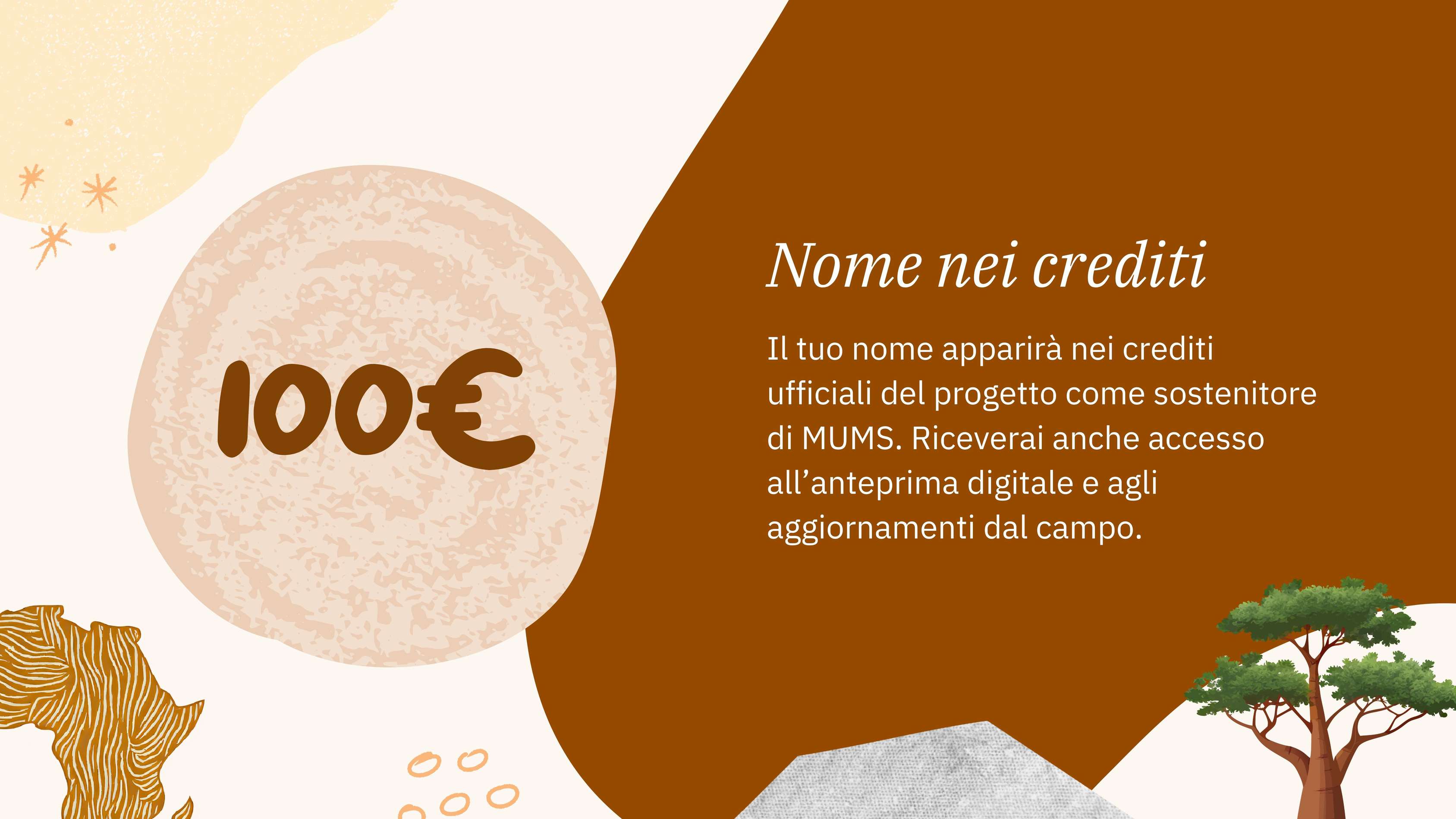Il tuo nome apparirà nei crediti ufficiali del progetto come sostenitore di MUMS.