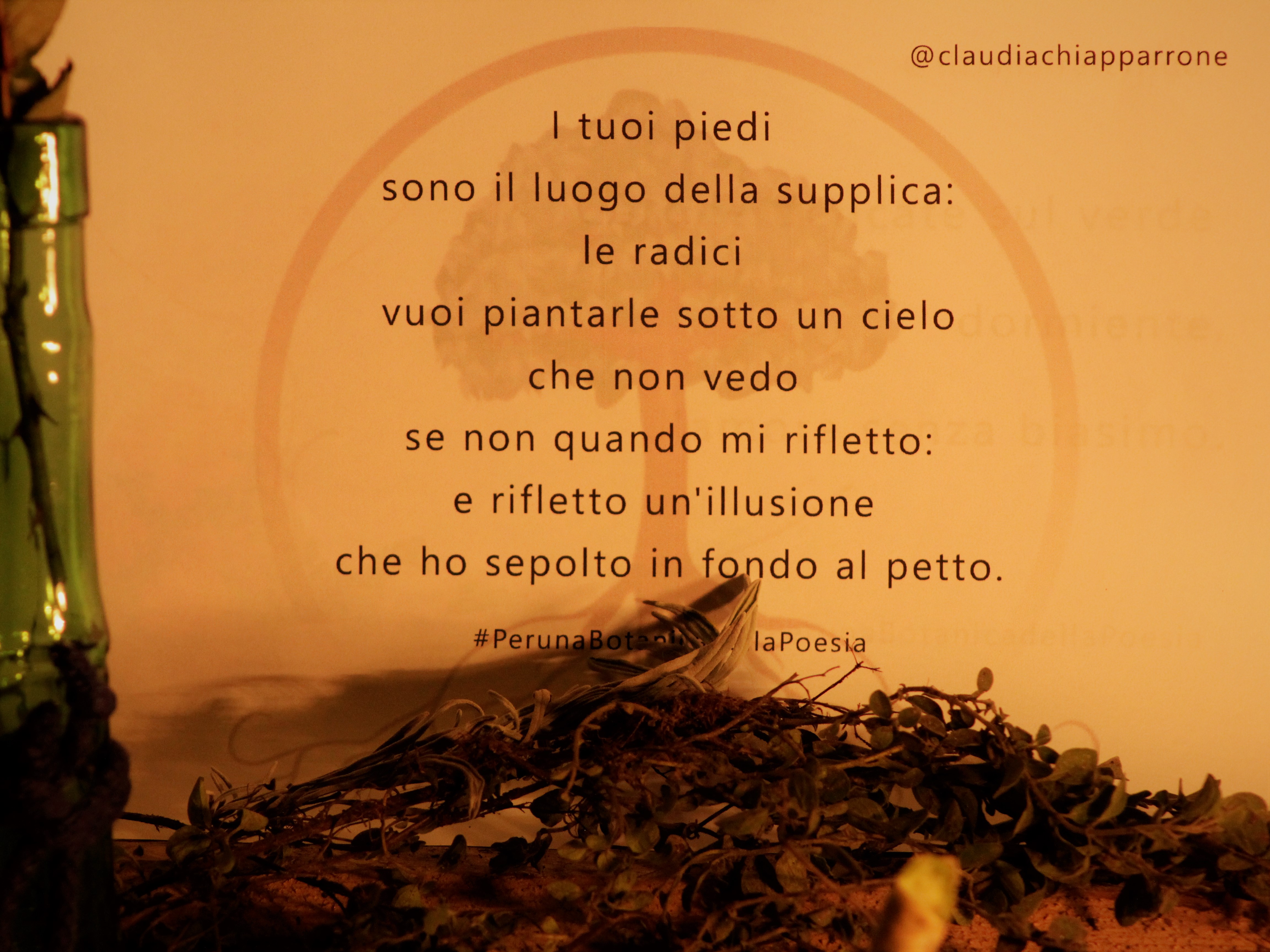 Botanica, quindi Ecologia, mondo vegetale. Piante e fiori. Alberi, foglie, foreste. Carta di cellulosa, carta reciclata. Ambiente, vero, tangibile e sostenibile. Ecco i campi di interesse di questo Progetto che radica le sue motivazioni in un Concept quello del mondo botanico, erboristico medievale. Le piante e la loro azione fitoterapica che è stata alla base della Medicina Antica. Che poi tanto antica non è dato che ancora beviamo tè e tisane di alloro con scorza di limone per sgonfiare la ritenzione gastrica. Insegnamenti, medicine e ricette ma anche rose, margherite, papaveri e tulipani. Bulbi, radici, rami, foglie, tutte estensioni dello stesso principio cellulare. La stessa miccia che accende la parola ed il pensiero nel mondo con l'apporto del grano dell'Anatolia e lo sviluppo della Filosofia in Grecia. Noi siamo ciò di cui ci nutriamo disse un filosofo. Ed esistono vegani ortodossi, vegetariani per scelta. Diete a base di solo verdure. Gli insetti proteici dei nuovi mercati emergenti. Esiste una cultura del Food che fa sede e bella mostra al Fico di Bologna. Ed esiste un immaginario poetico, bucolico che prevede immagini, metafore, similitudini col mondo ambientale. Retorica botanica. Aulica e colta. Neruda scrive del Carciofo. Dante della Beata Rosa. Tasso delle mamme irsute delle caprette dell'Arcadia ambientate nella sua Campania Felix. Stiamo raccogliendo fondi e donazioni per realizzare un LiveTour del Progetto. L'idea è quella di installare le poesie dei quaranti Poeti nazionali coinvolti in alcune Città italiane. Milano, Roma, Benevento, Palermo e Modica. I soldi serviranno ad organizzare i transfert dei poeti partecipanti. Raggiungere questo fine, riuscendo quindi a veicolare questi scatti, risarcendo anche in piccolo e in maniera equa gli spostamenti dei Poeti che verranno a leggere i propri versi sarebbe un ottimo obiettivo e traguardo. Confidiamo perciò nel Vostro Amore per la Poesia. L'idea è quella di ambientare il LiveTour in Primavera inoltrata. Passando dal BezzeccaLab di Milano, una Villa con giardino ad Aprilia, una abitazione particolare con annesso vivaio e zoo a Benevento, l'Orto Botanico di Palermo in occasione di Una Marina di Libri, un vivaio attrezzato a ricevere ospiti nel Ragusano ed un Agriturismo nel Territorio di Noto. Vi ringraziamo anticipatamente per il Vostro contributo. W la Poesia. Anche quella botanica e bucolica. L'Ambiente ringrazia.