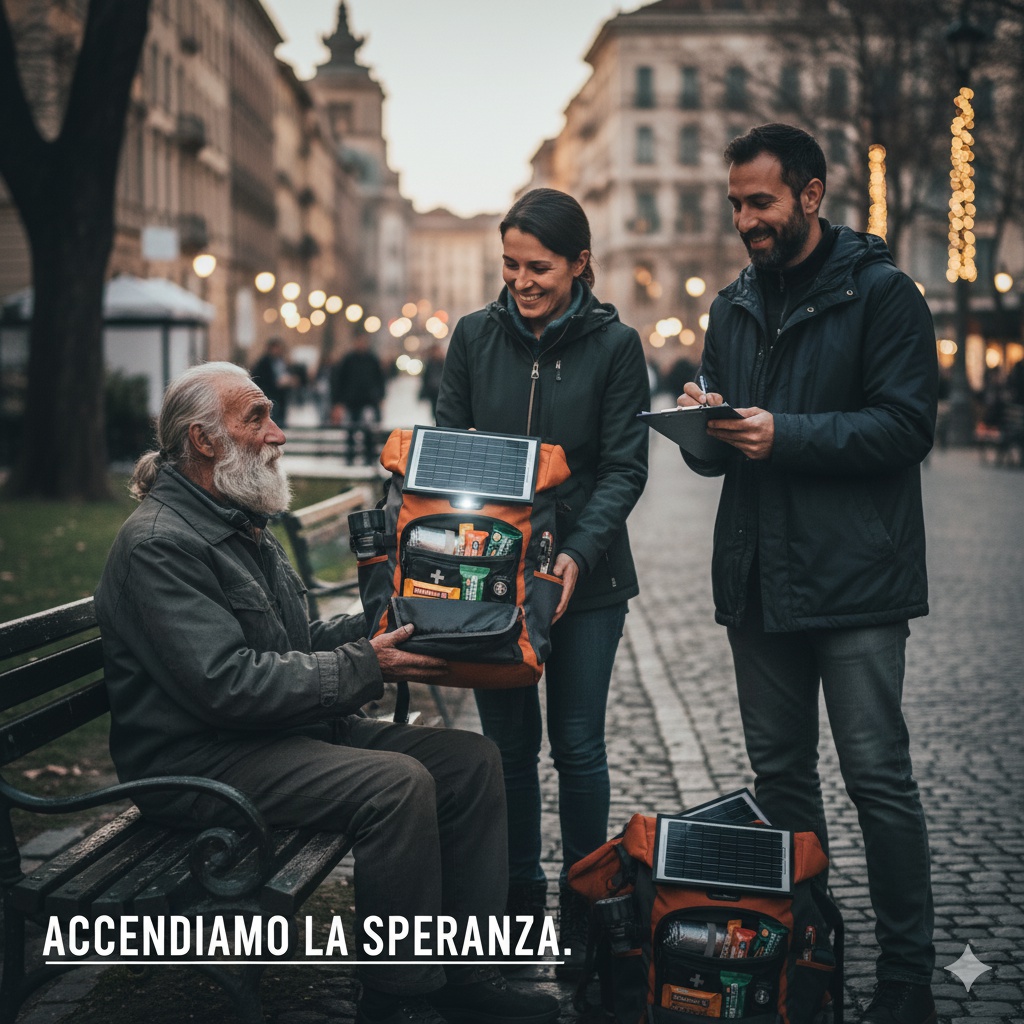 Ogni notte, migliaia di persone nelle nostre città si trovano a combattere contro il freddo, l'oscurità e la mancanza di accesso ai servizi essenziali. Per chi vive in strada, un'emergenza medica, l'impossibilità di ricaricare il telefono per chiamare aiuto, o semplicemente la mancanza di un kit igienico, può trasformarsi in un rischio per la vita o in una perdita di dignità.
