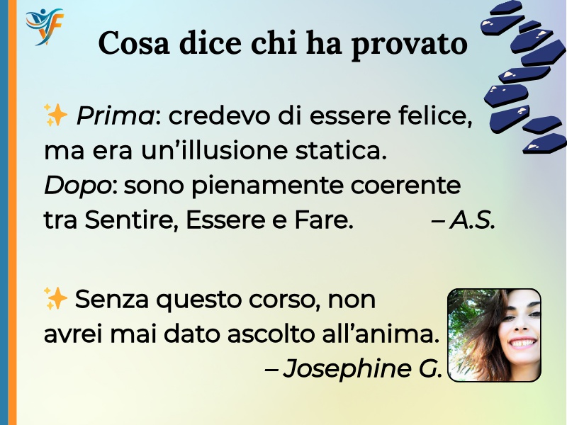 “Senza questo corso non avrei mai dato ascolto all’anima.” – Josephine G.