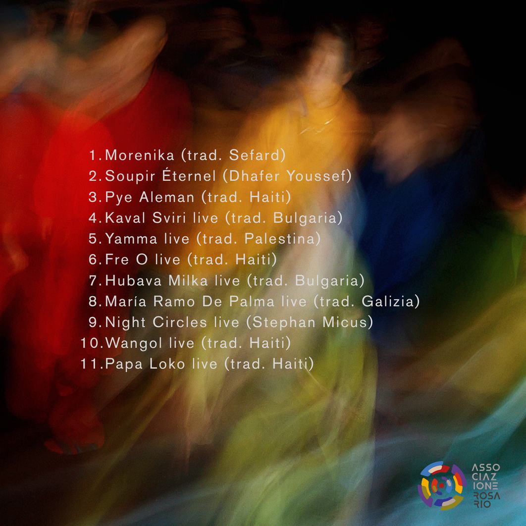 Nel disco cantiamo in creolo, bulgaro, spagnolo sefardita, arabo e anche in lingue inventate, create per evocare nell’ascoltatore libere suggestioni, non determinate dal significato delle parole ma dalla potenza timbrica e strumentale della voce. I brani sono eseguiti interamente a cappella, ad eccezione di alcuni arricchiti dal prezioso contributo di Cecilia Forni alle percussioni.