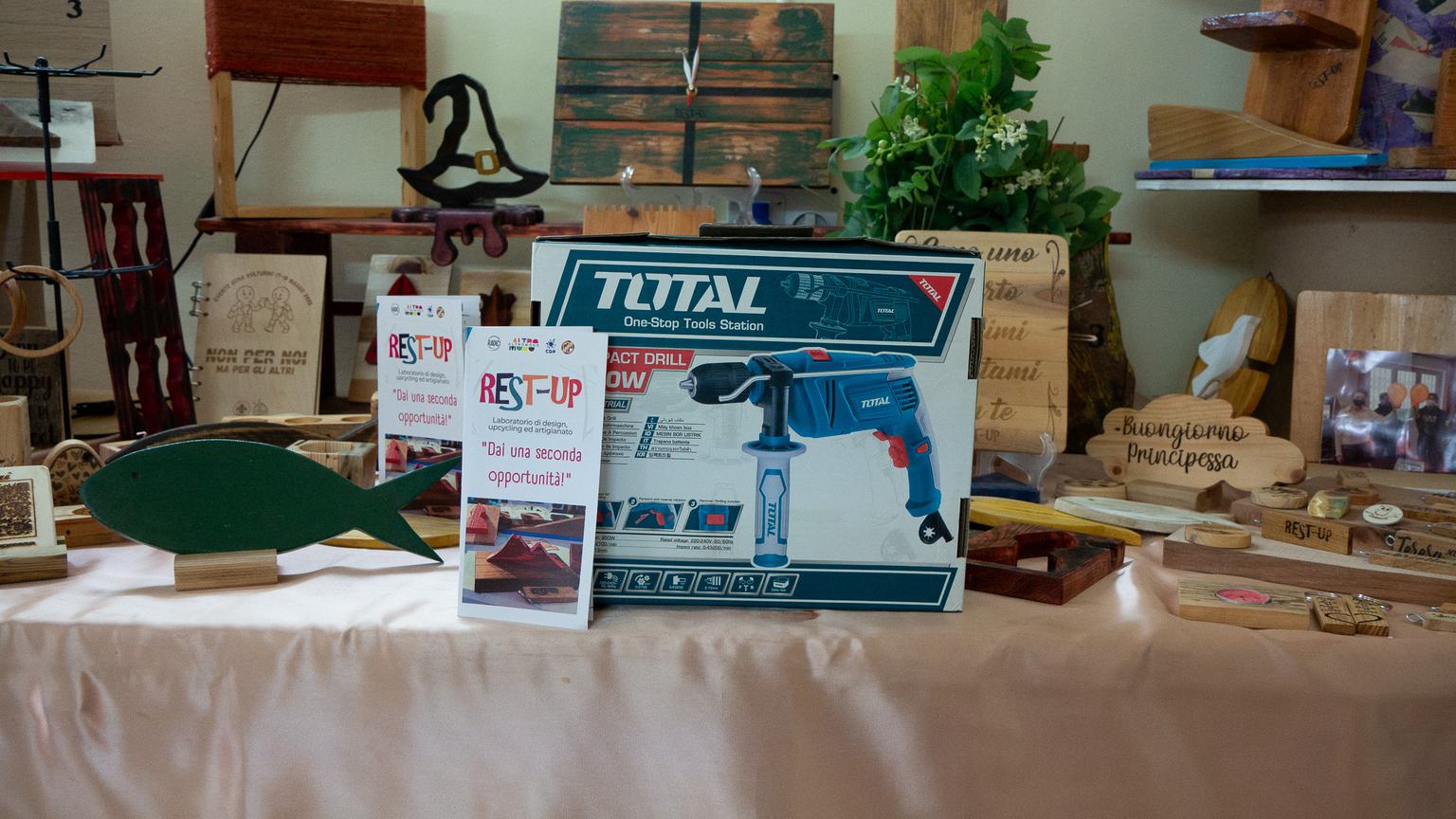 Il progetto Rest-up ha il suo laboratorio all'interno del Centro Diurno Polifunzionale di Santa Maria Capua Vetere, dove insieme agli educatori e i volontari si è creato un luogo accogliente e formativo, dove i ragazzi compiono un primo passo verso il mondo del lavoro ma soprattutto riescono a incanalare la loro energia dando libero sfogo alla creatività, riuscendo a scoprire i propri talenti e il proprio valore.