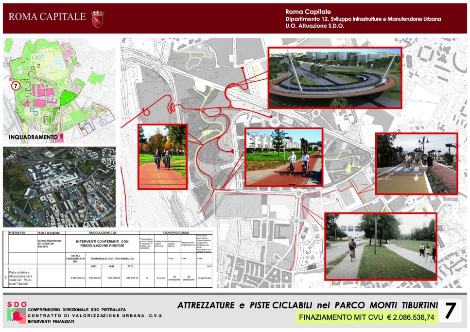 Il rapporto della nuova direzionalità con l’esistente quartiere di Pietralata doveva essere prevalentemente pedonale; l’impatto ambientale è mitigato da un grande parco, in parte già esistente,esteso anche all’area ferroviaria Tiburtina e collegato al parco dell’Aniene a nord e al quartiere di piazza Bologna ad est e, per dare seguito agli accordi precedentemente stipulati, nel 2013 il MIT finanziò la creazione di attrezzature e piste ciclabili previste nel Parco con una somma iniziale di € 2.086.000 che, ad oggi, tuttavia, non sono MAI STATI UTILIZZATI.