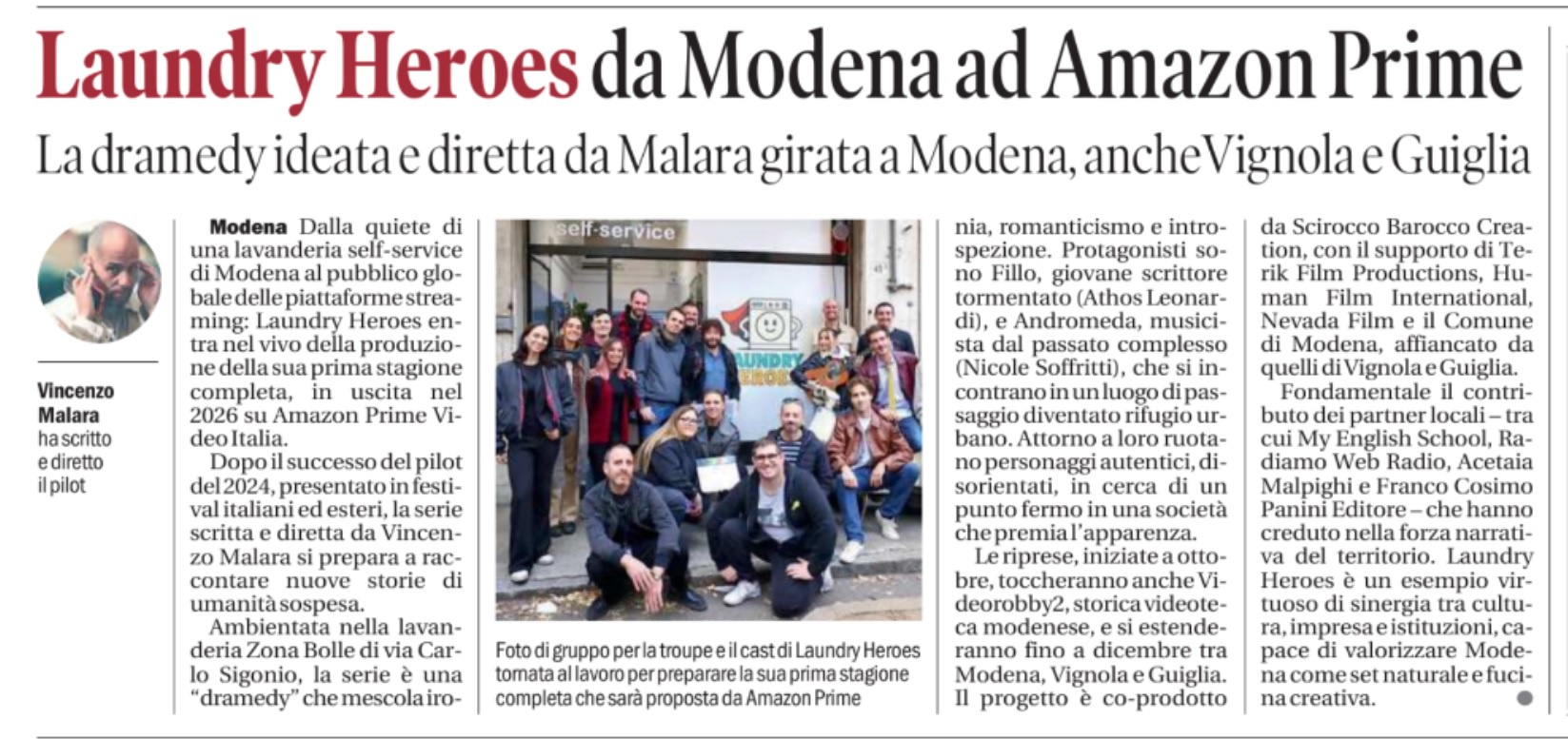 La prima puntata di ‘Laundry Heroes’, prodotta dalla Scirocco Barocco Creation e dalla produttrice associata Roberta Sghedoni, con il sostegno dell’amministrazione comunale di Modena, dell’associazione Euphonia e di partner locali, è stata presentata in anteprima nazionale al cinema Arena di Modena nel 2024.