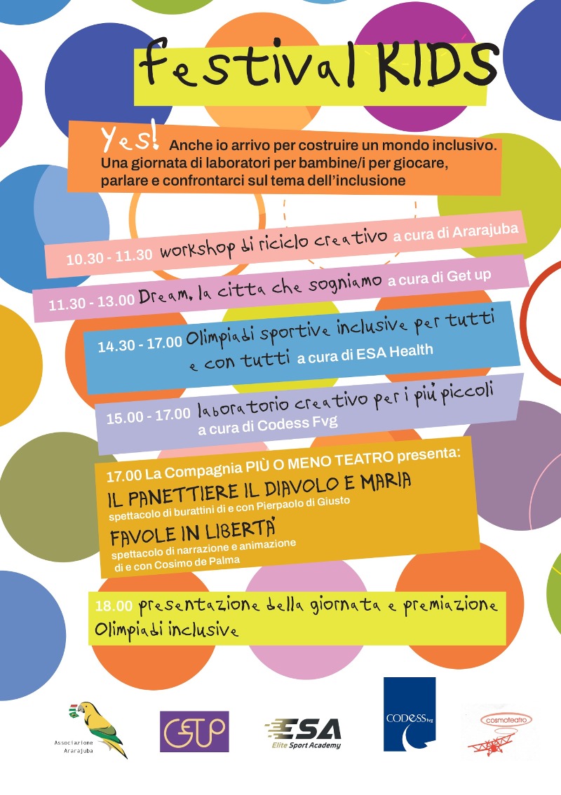 Novità di quest'anno è il Festival kids, un intero programma parallelo dedicato a bambinǝ e ragazzǝ: tanti laboratori per giocare, parlare e confrontarci sul tema dell'inclusione. Qui trovi l'evento.