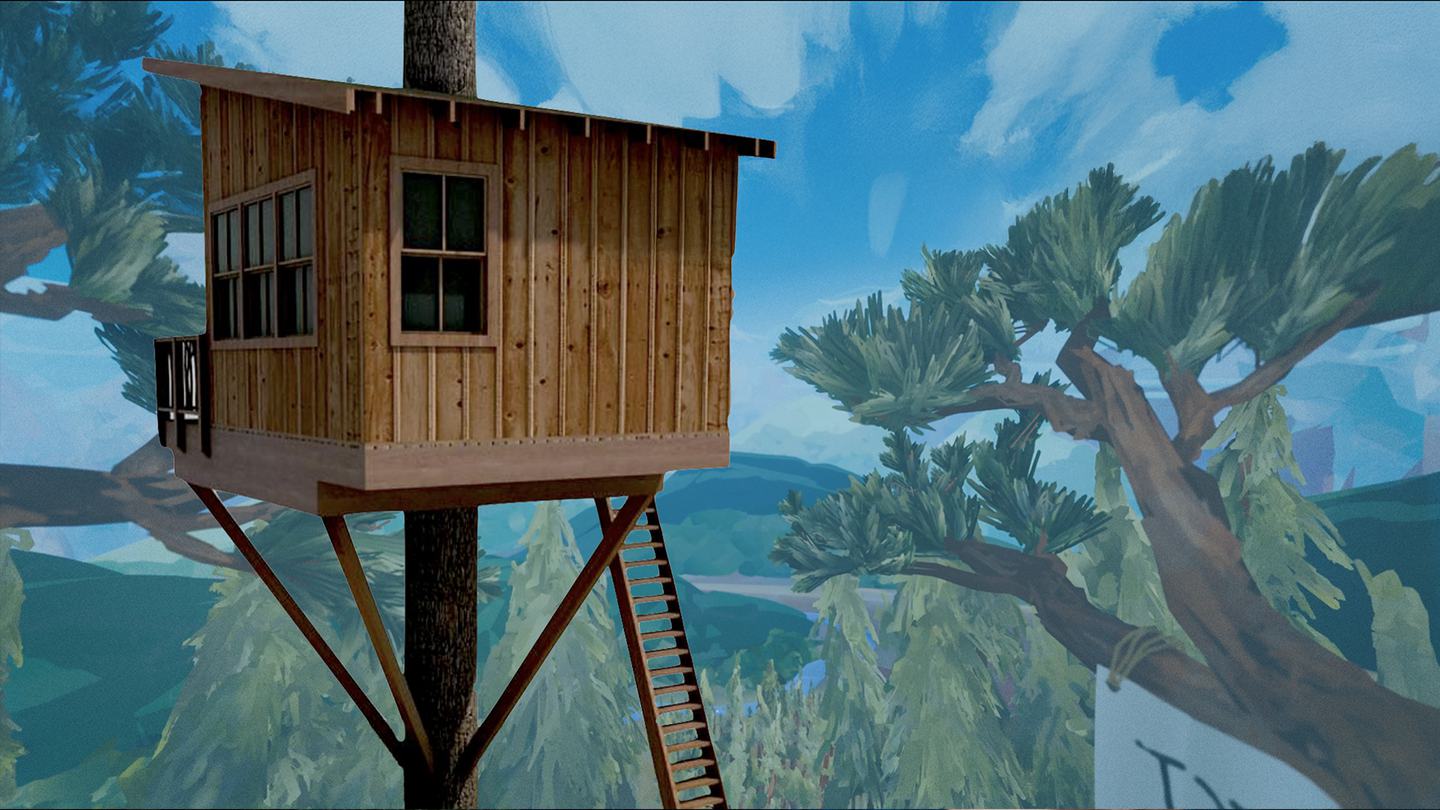 L'installazione virtuale consisterà in una piattaforma simile a una casa sull'albero, attrezzata per aiutarti a muoverti e interagire con gli oggetti.