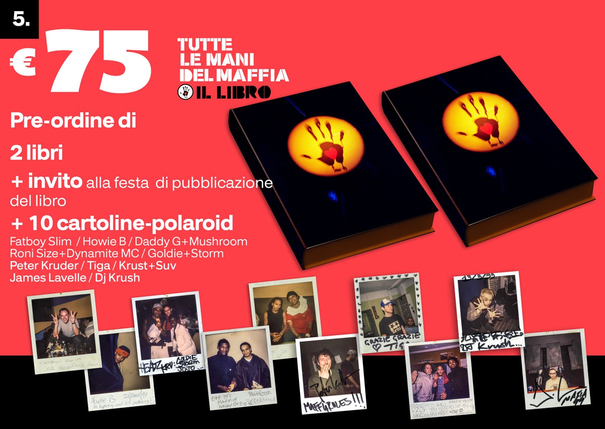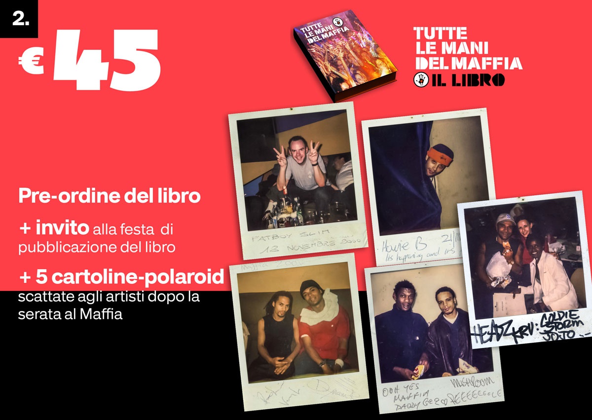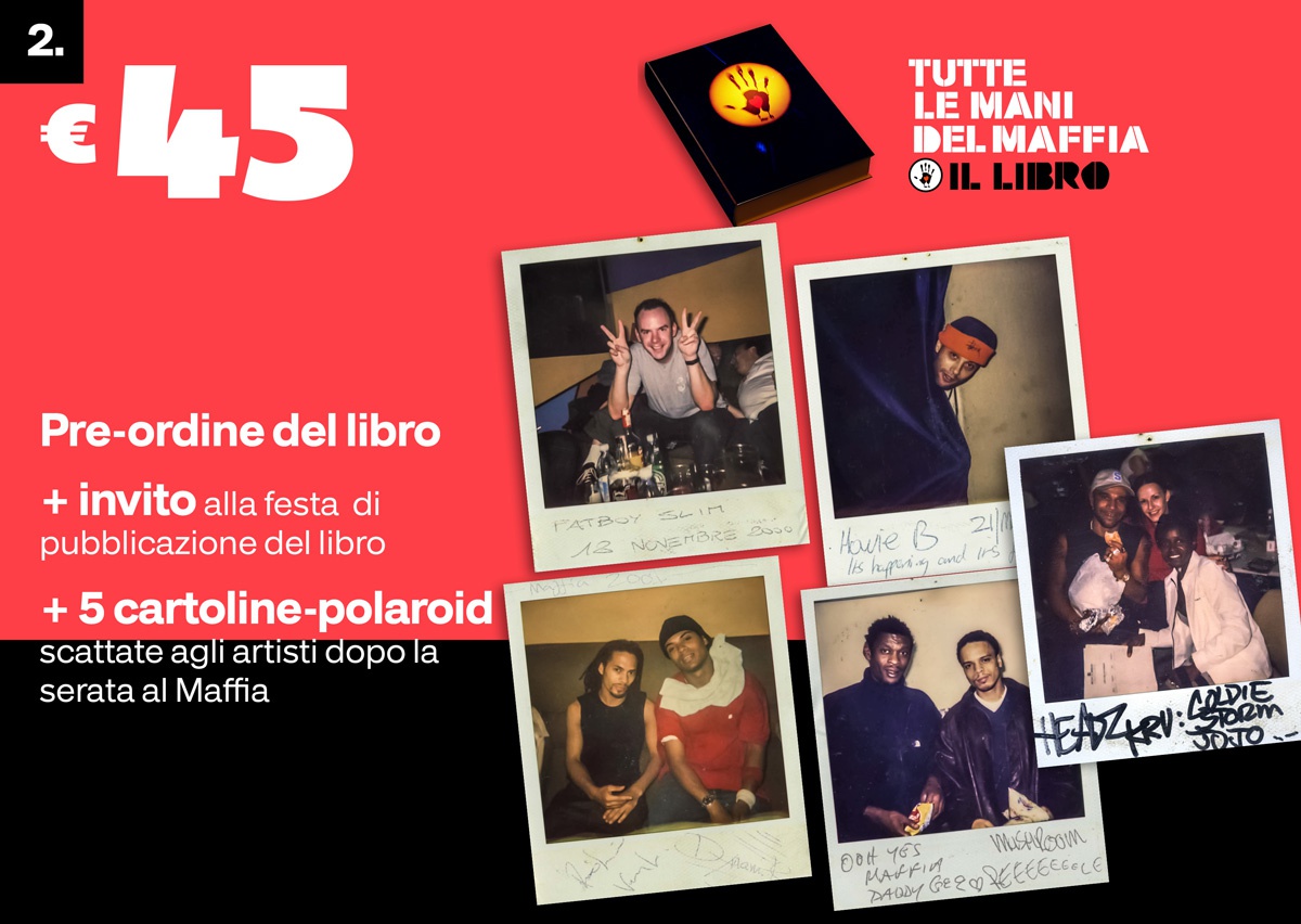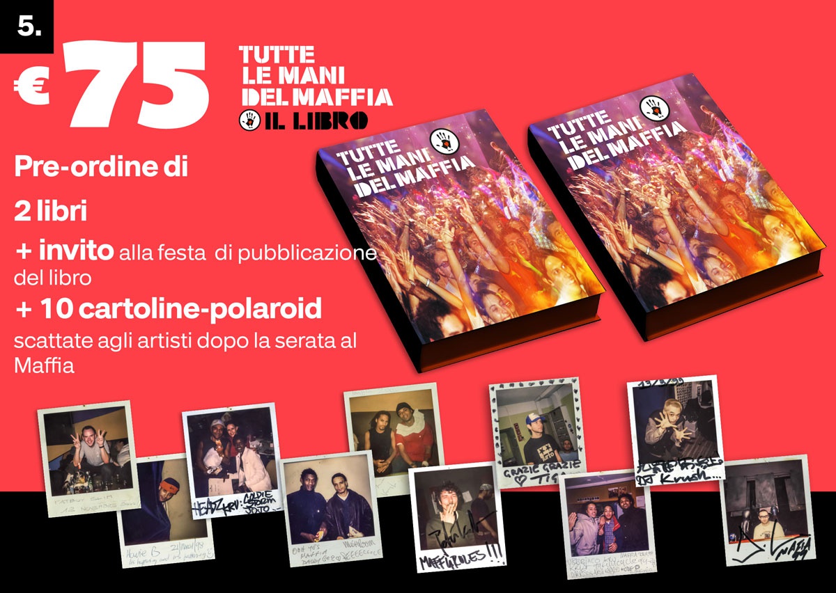 Pre-ordine del libro + invito alla festa di pubblicazione del libro + 5 cartoline polaroid scattate a fine serata agli artisti del Maffia.